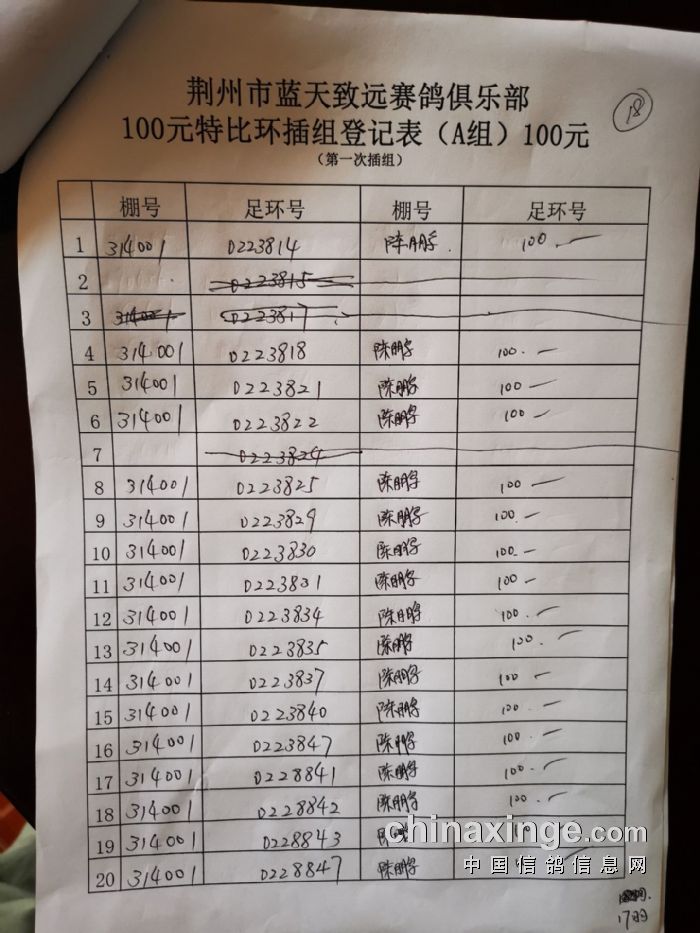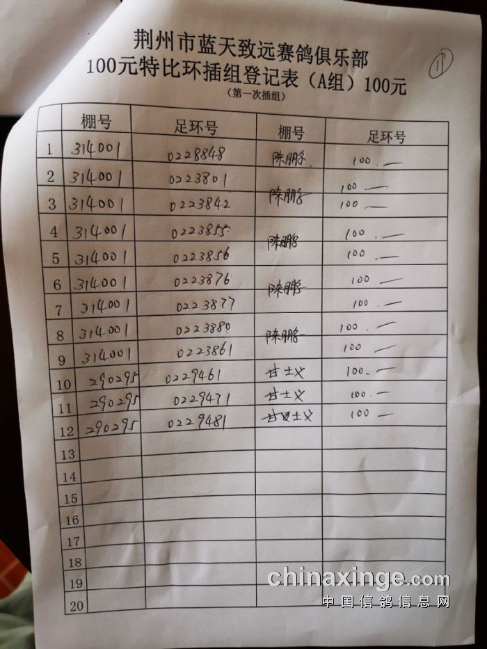 2017年11月22日全国千公里联赛廊坊站比赛集鸽清单