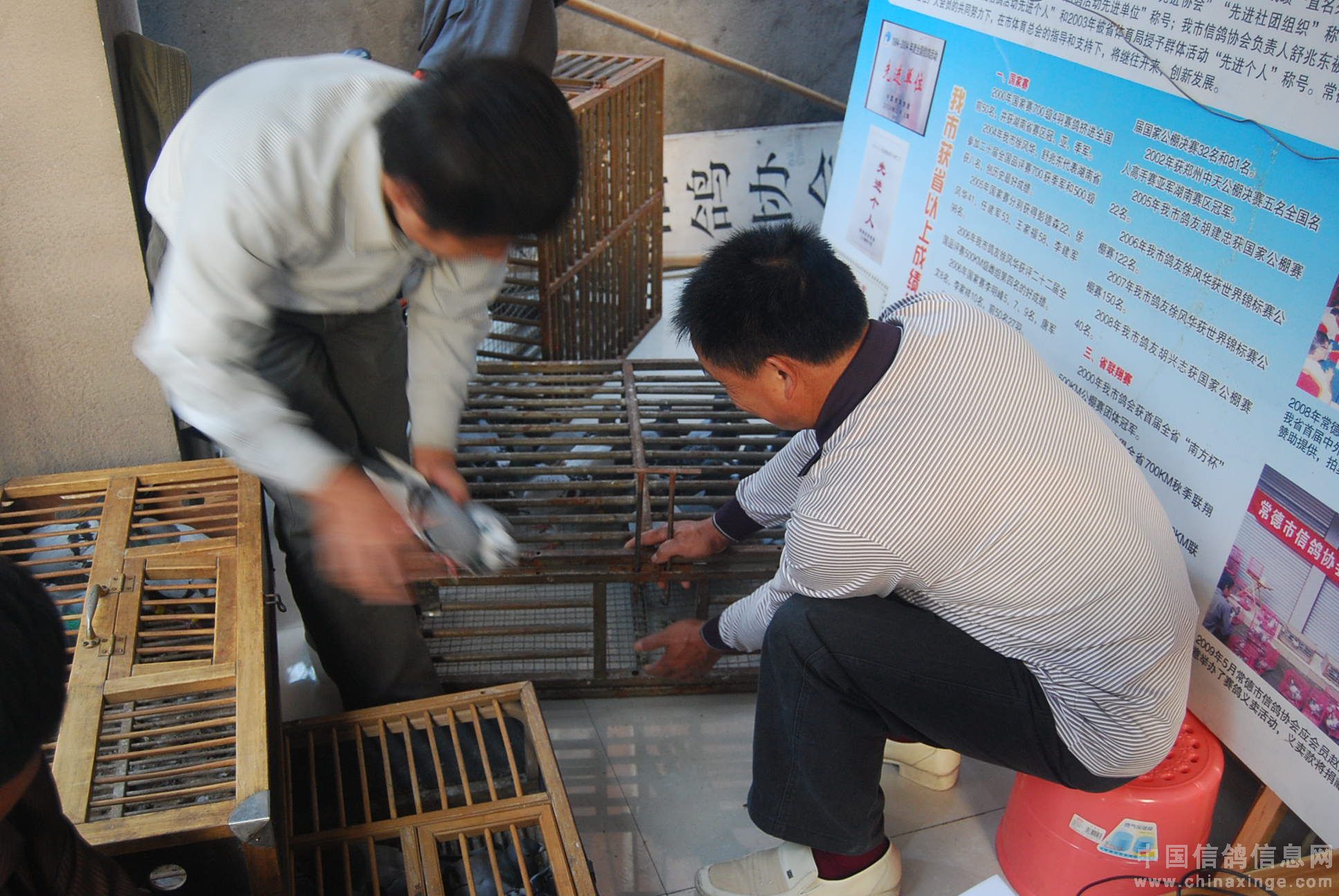冠军鸽查棚。