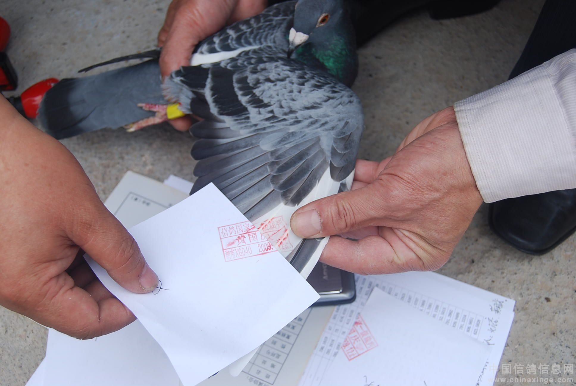 入赏鸽查验展示。