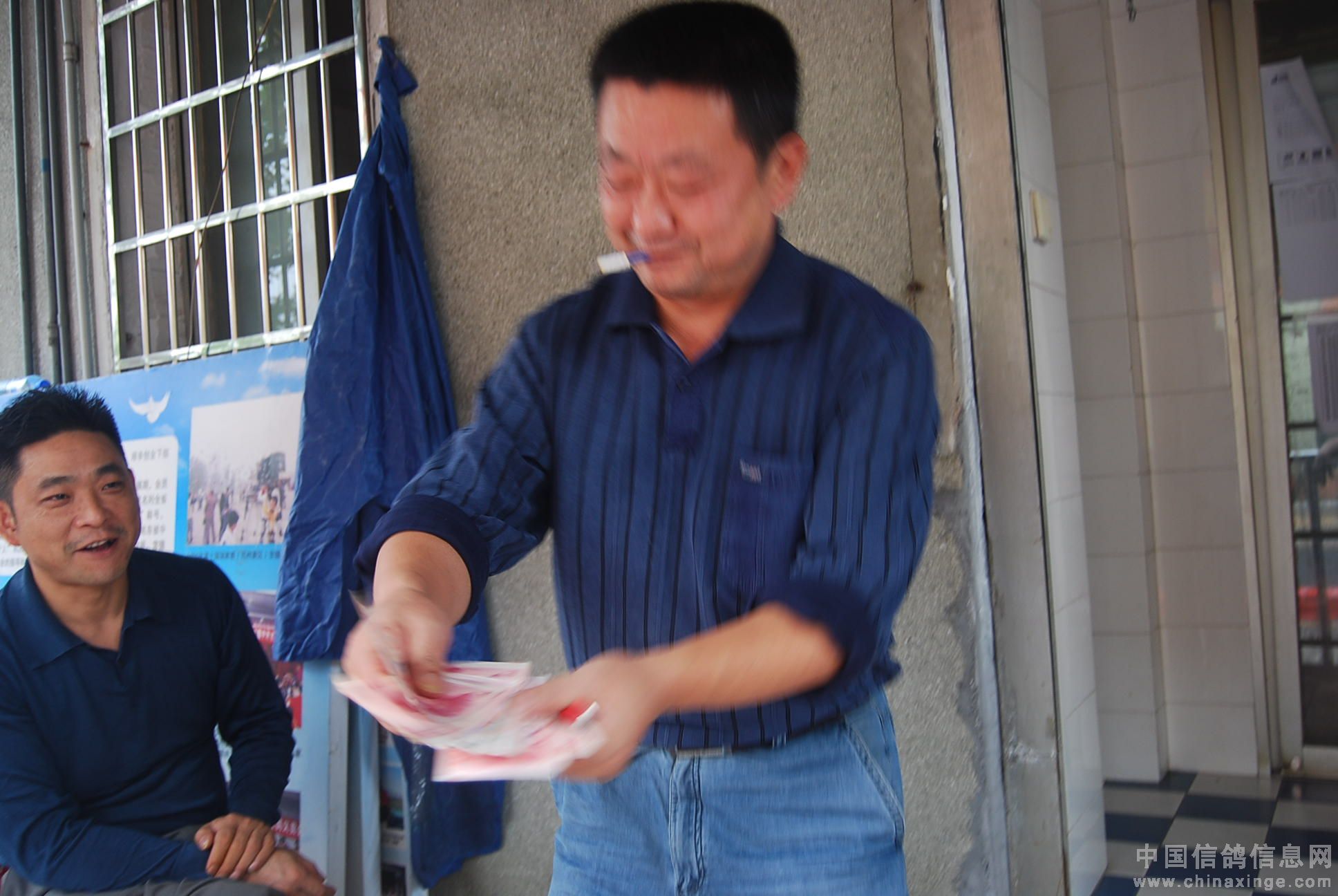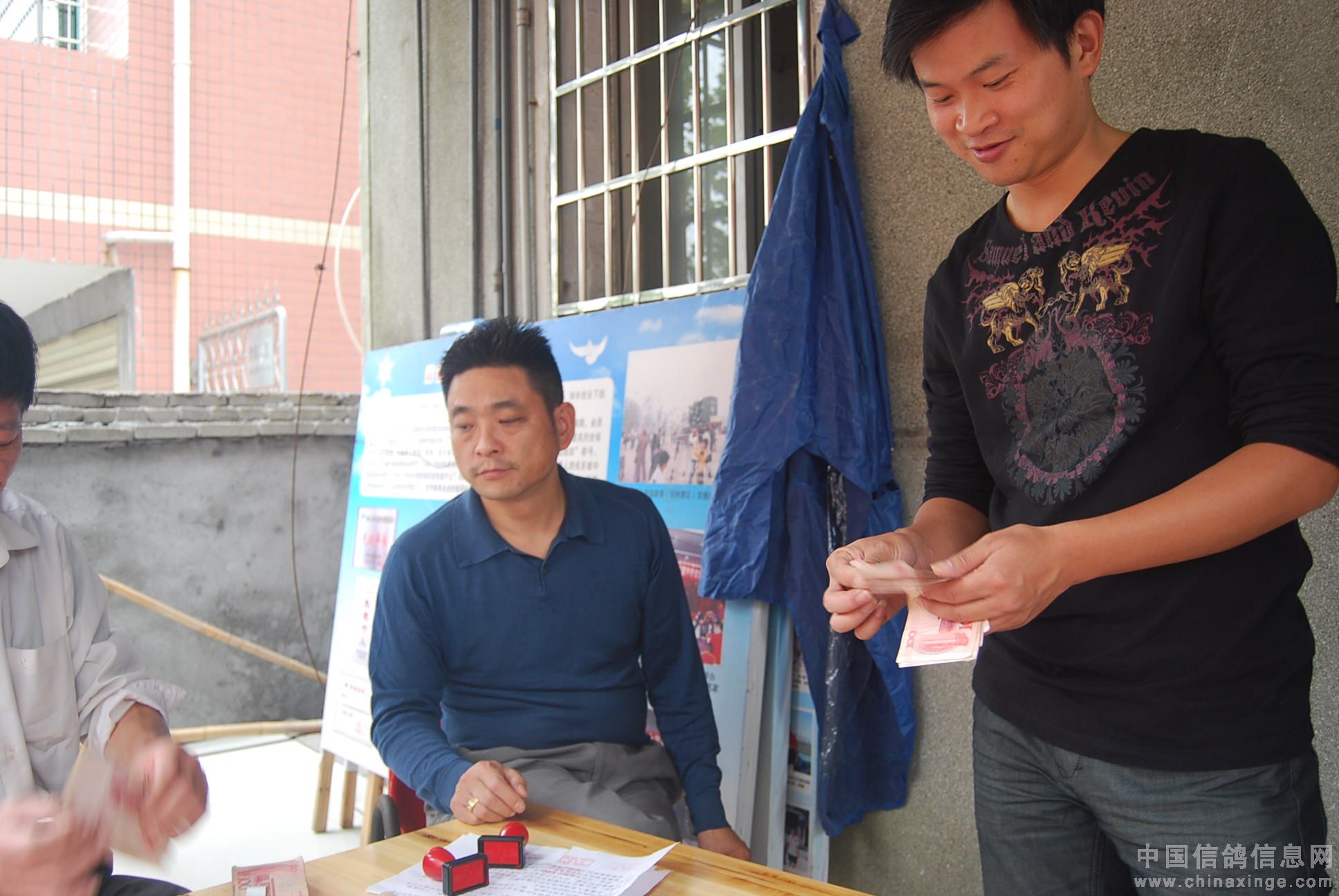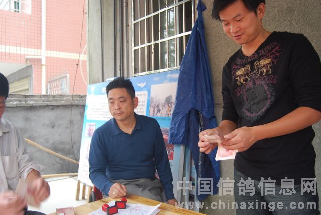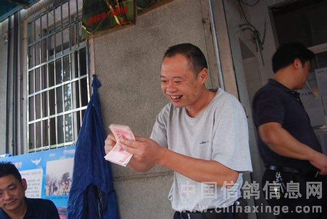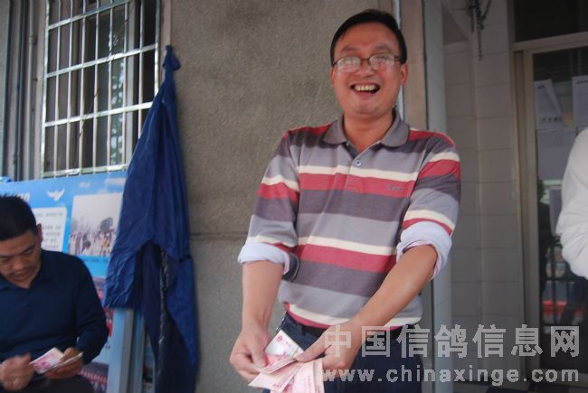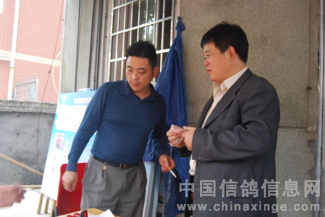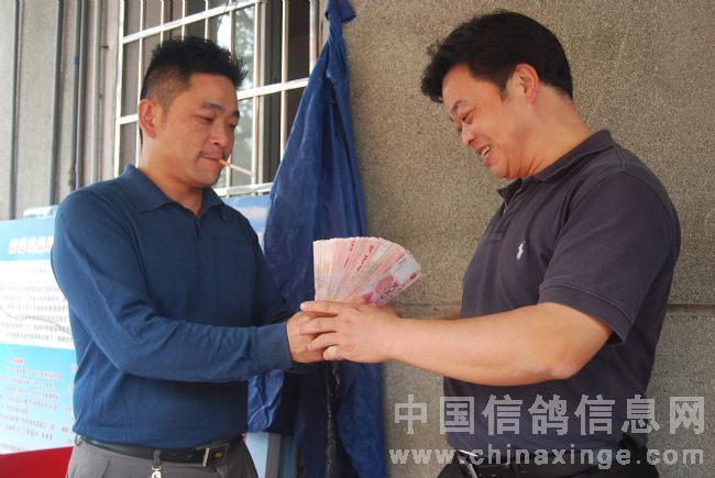 李国建先生为获奖鸽主发放奖金。
