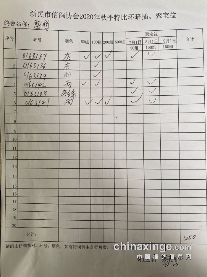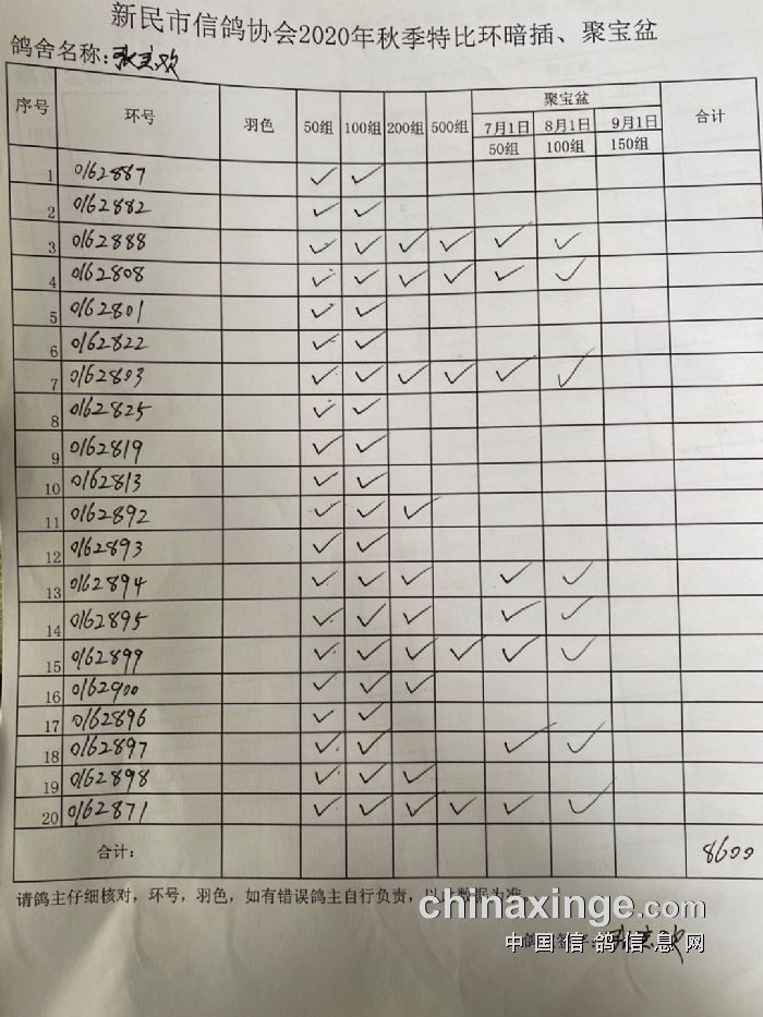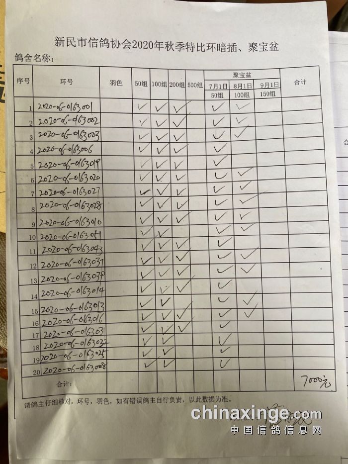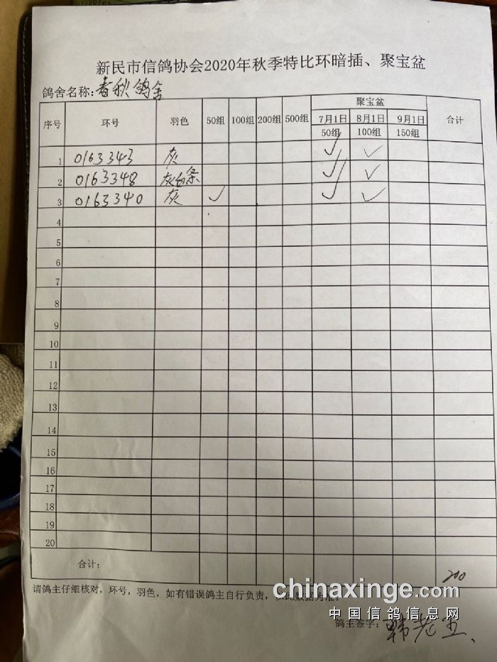 新民市信鸽协会2020年8月1日暗插聚宝盆明细