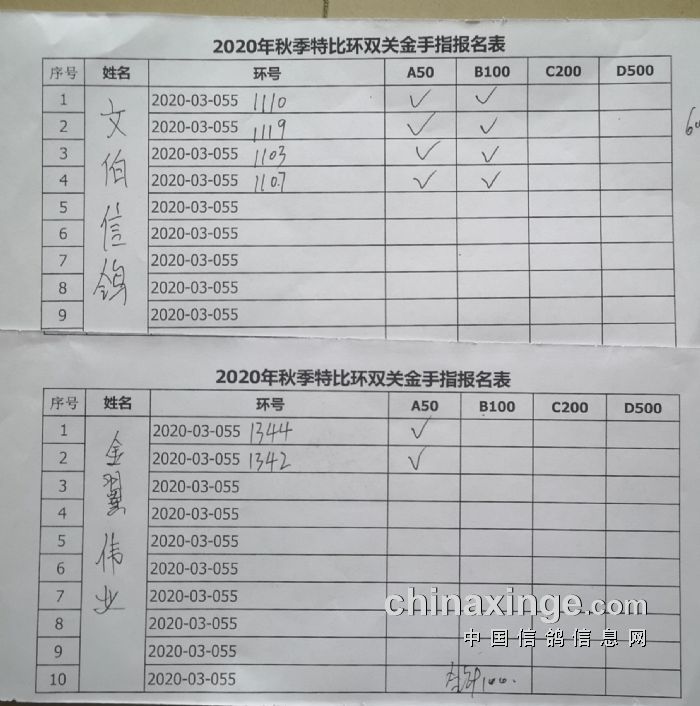 廊坊鸽会2020年秋季特比双关金手指指定原始单