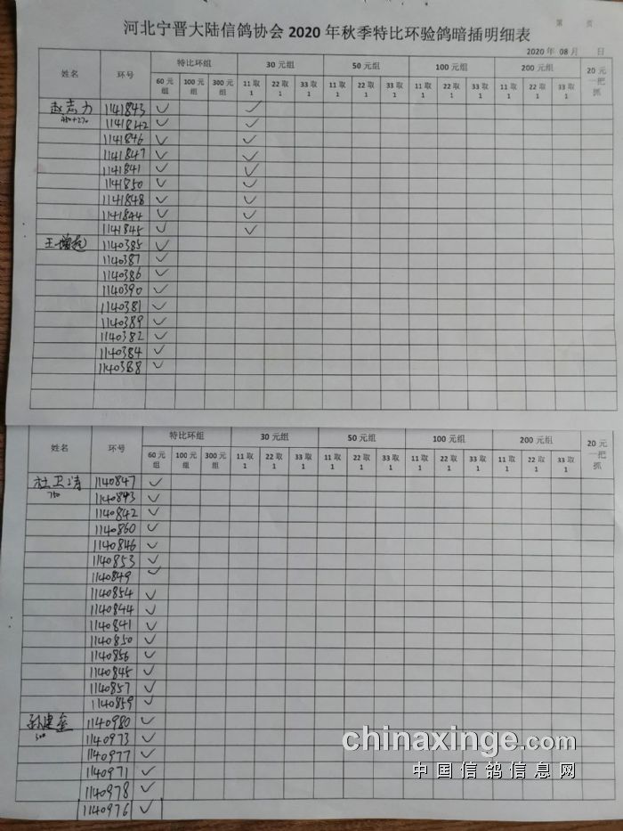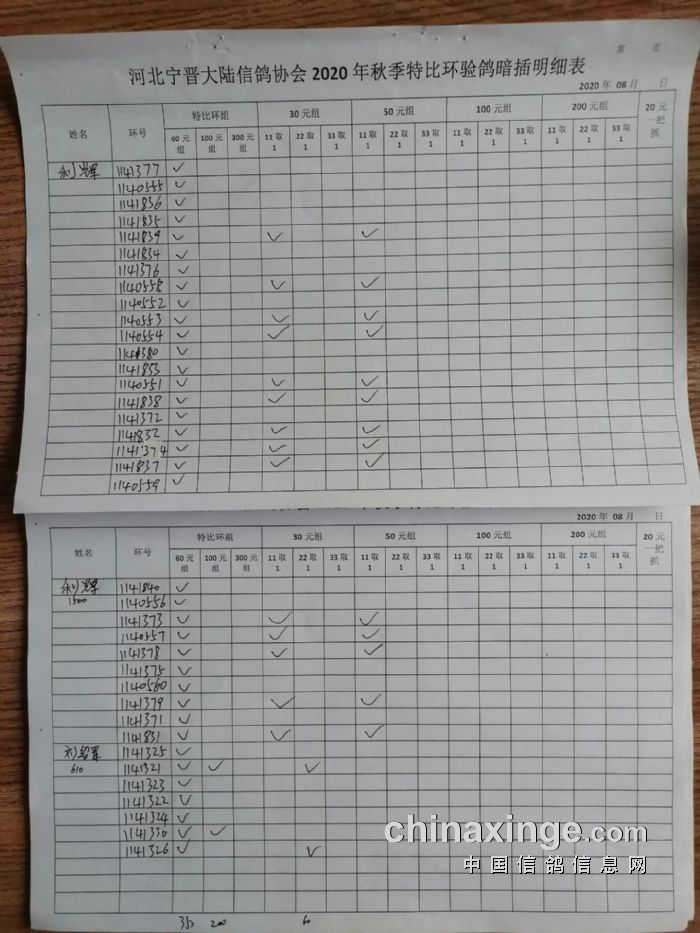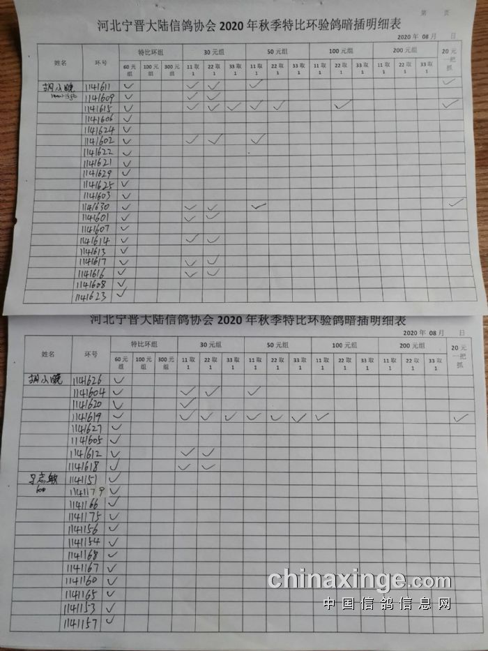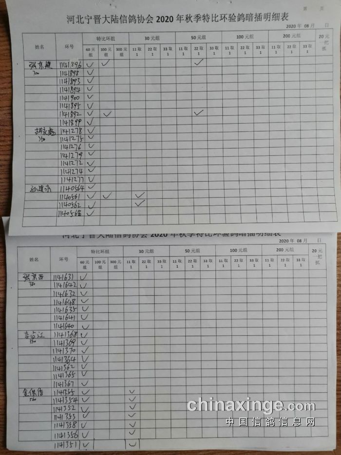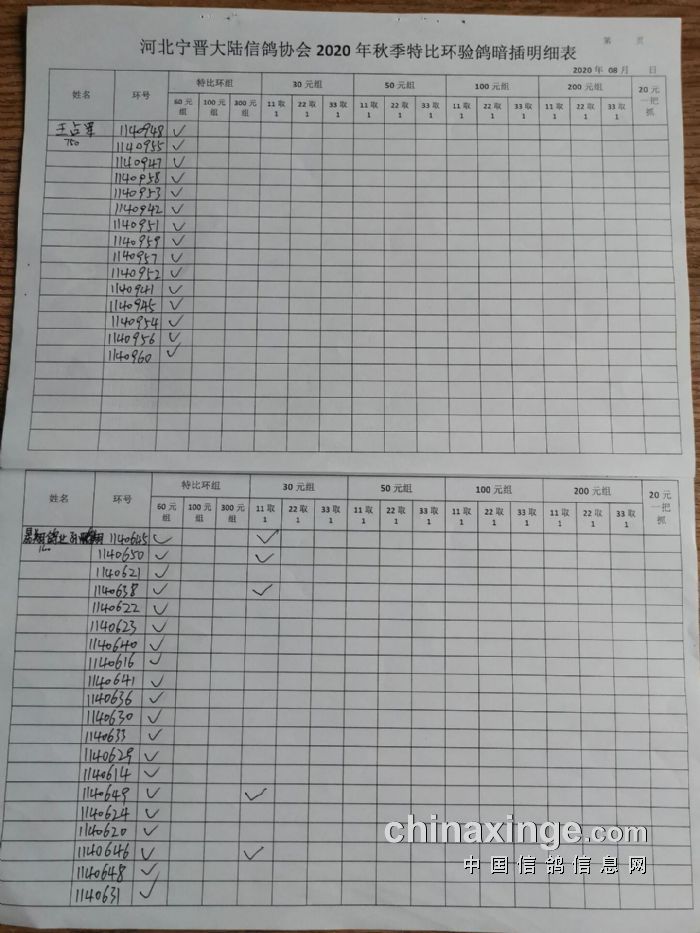 宁晋县大陆信鸽协会2020年秋季特比环验鸽暗插原单(1)