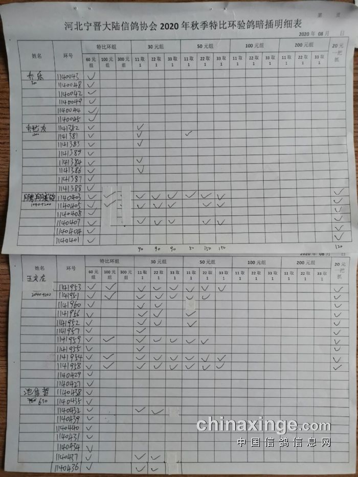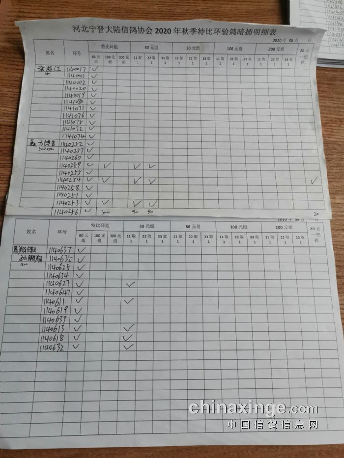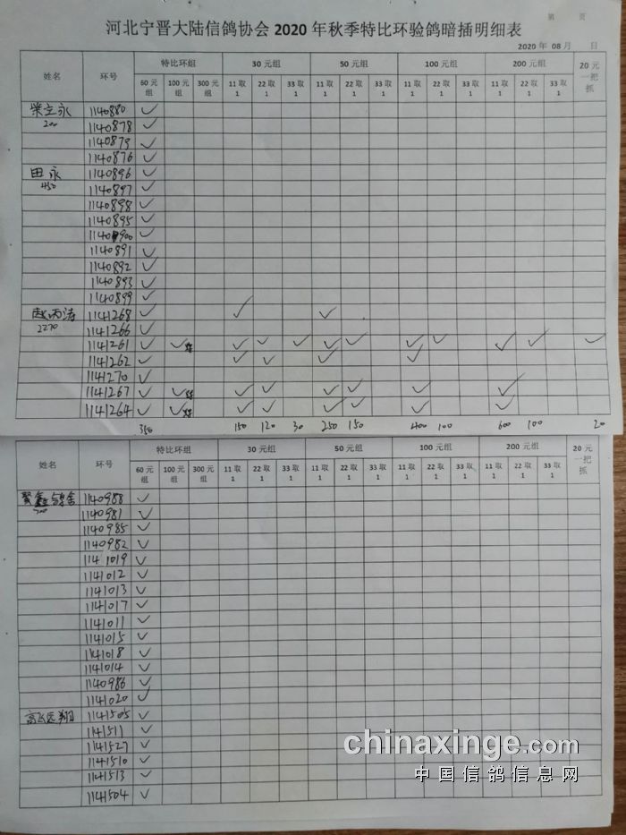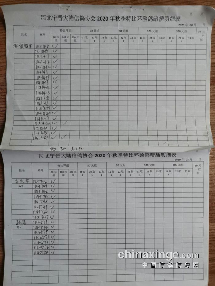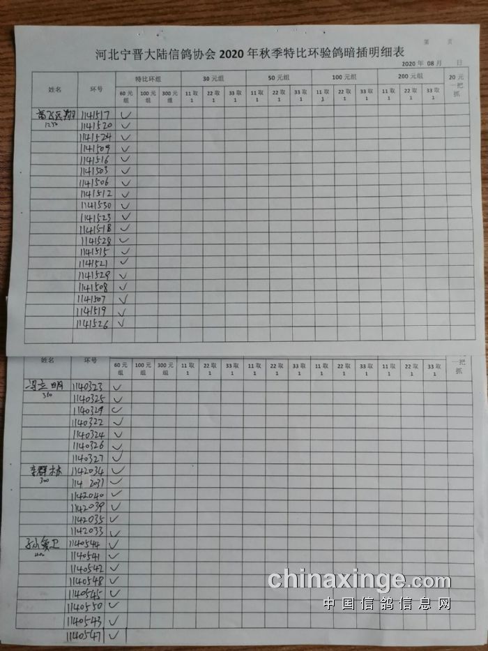 宁晋县大陆信鸽协会2020年秋季特比环验鸽暗插原单(1)