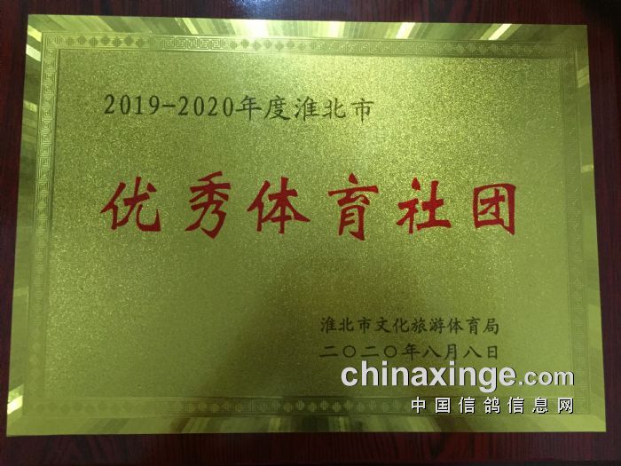 淮北市信鸽协会获2019-2020年度淮北市优秀体育社团奖