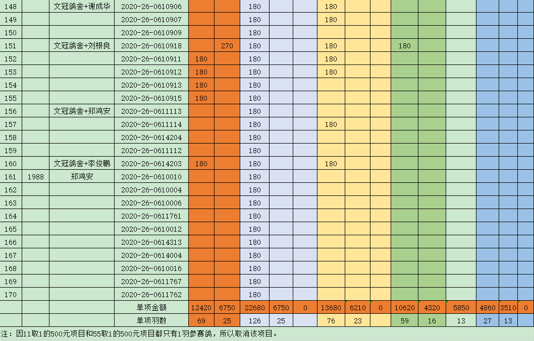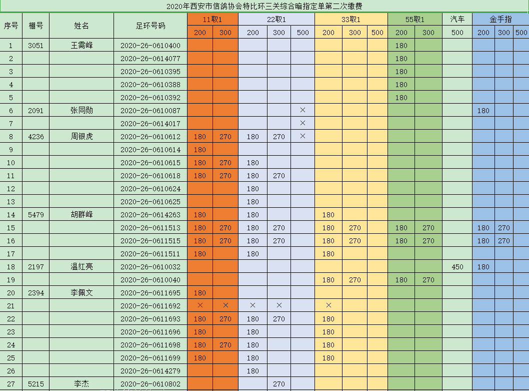 2020年西安市信鸽协会特比环三关综合暗指定单第二次缴费