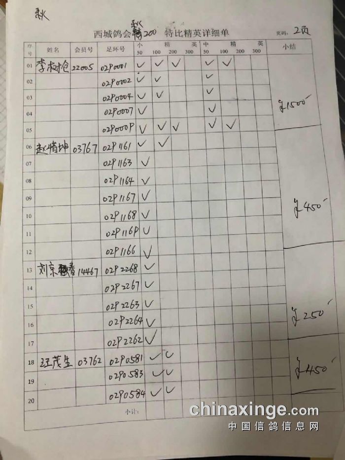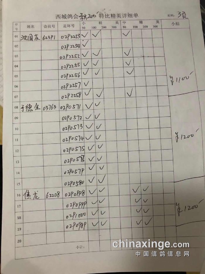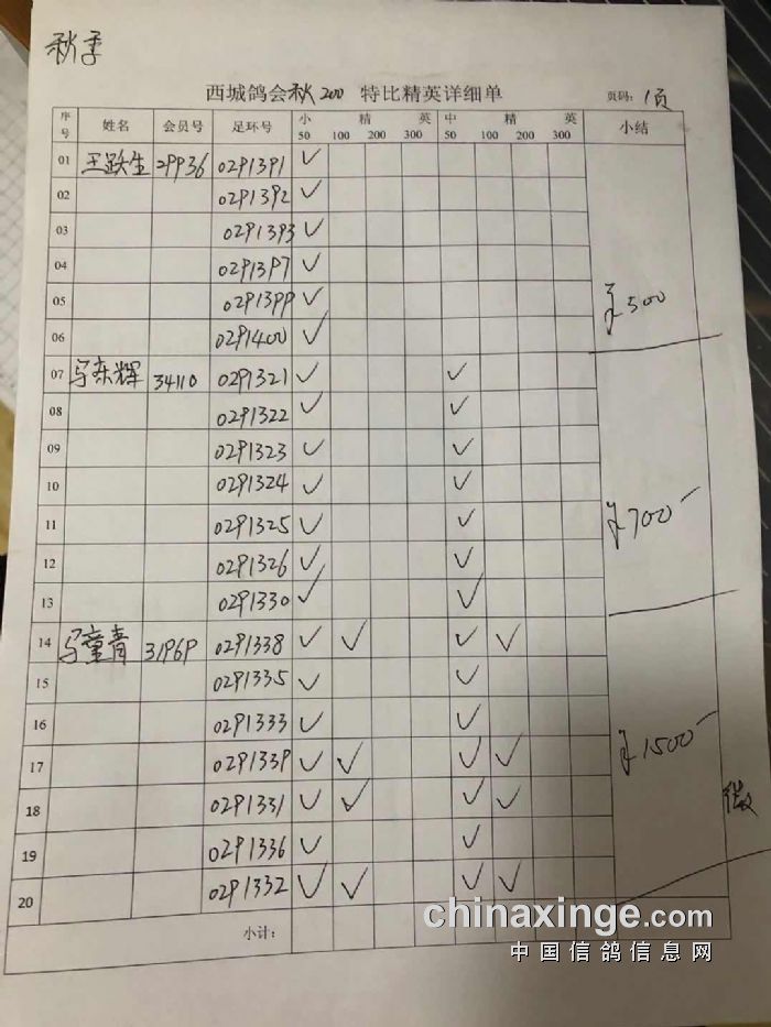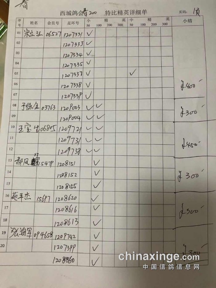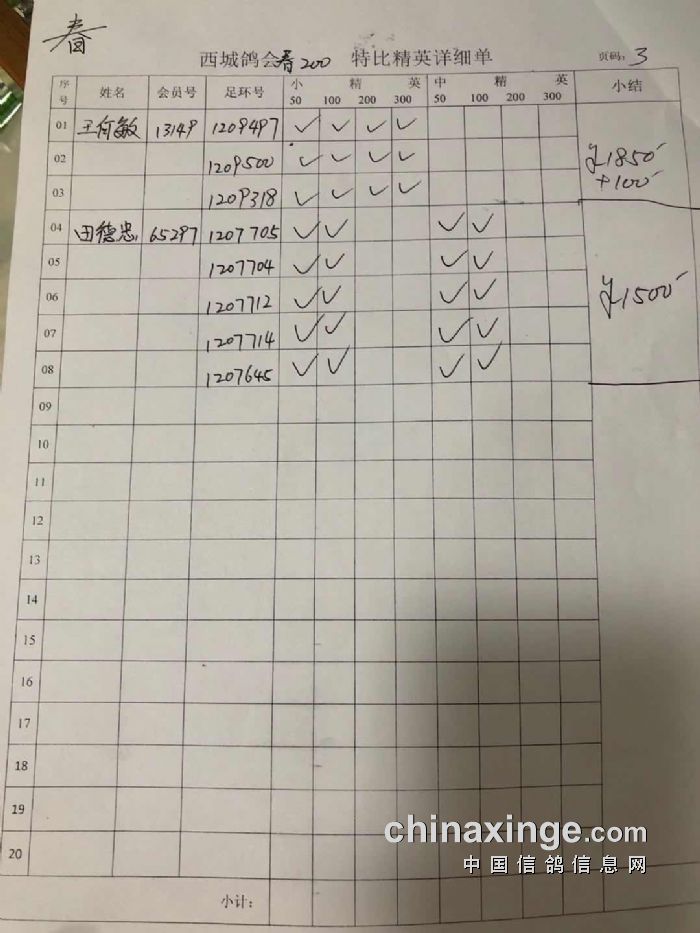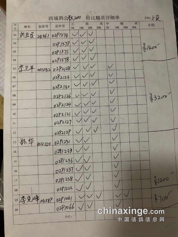 西城第八届“跨双年度最佳鸽舍、最佳鸽手”秋季积分光荣榜排名