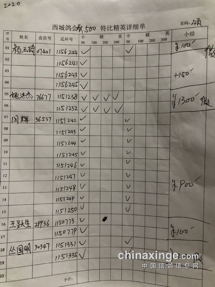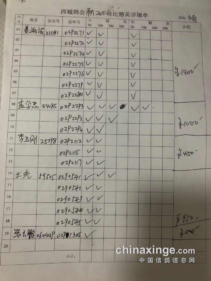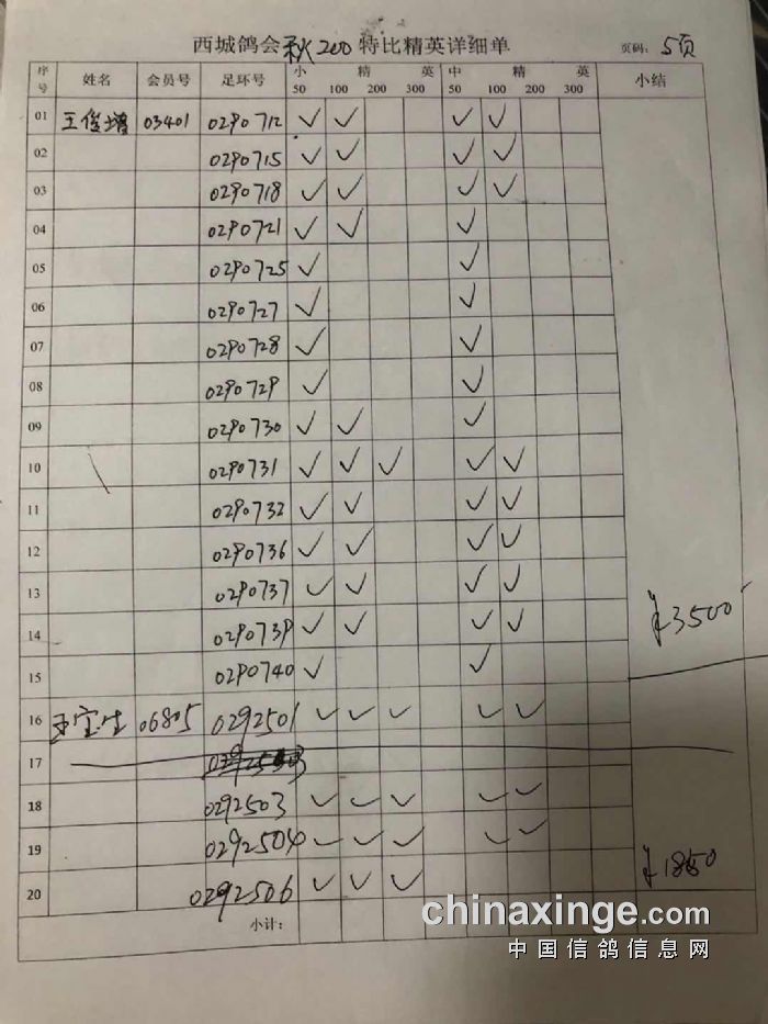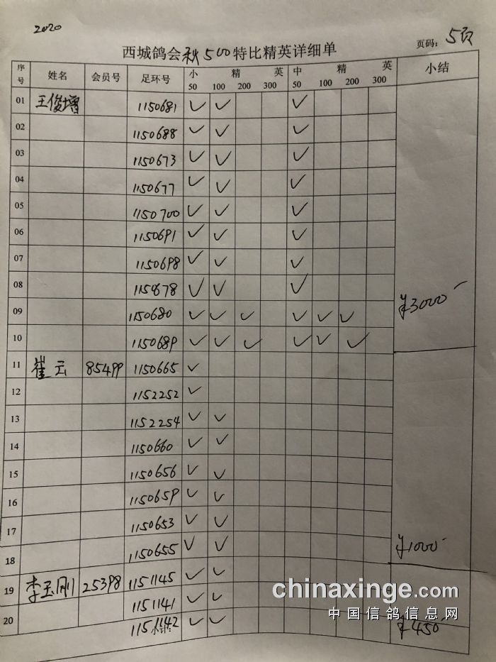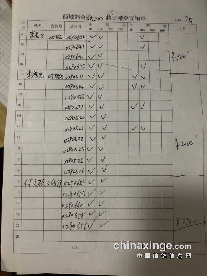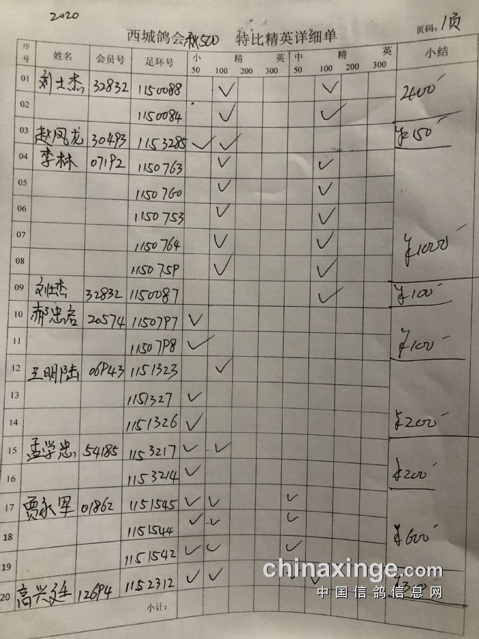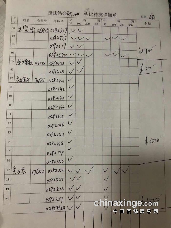 西城第八届“跨双年度最佳鸽舍、最佳鸽手”秋季积分光荣榜排名