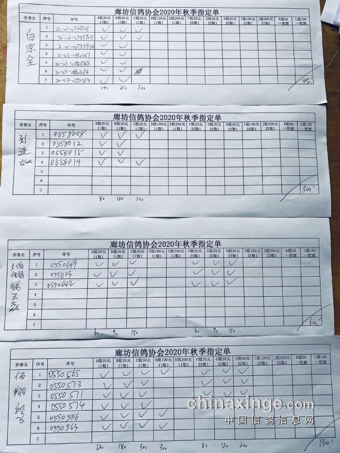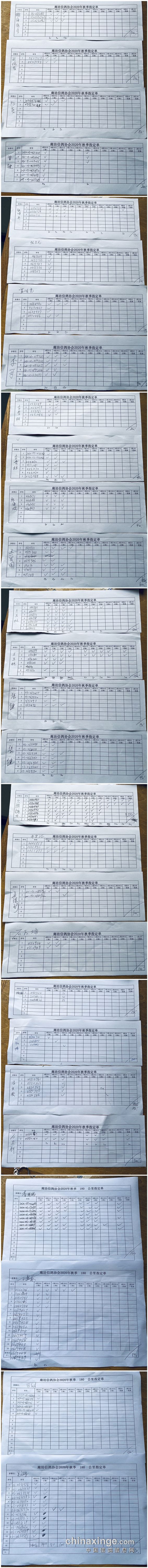 廊坊信鸽协会200公里比赛集鸽清单