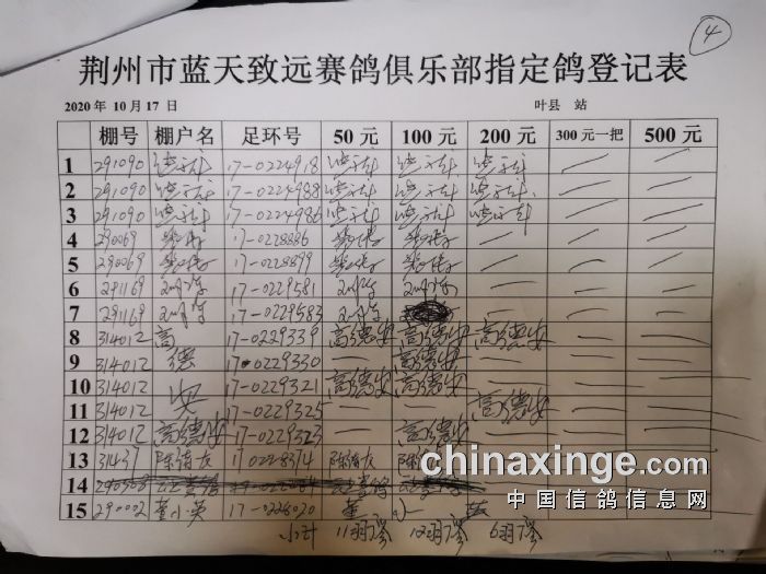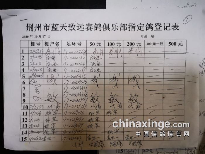 2020年秋10月17日370公里叶县站比赛特比环第一关指定鸽