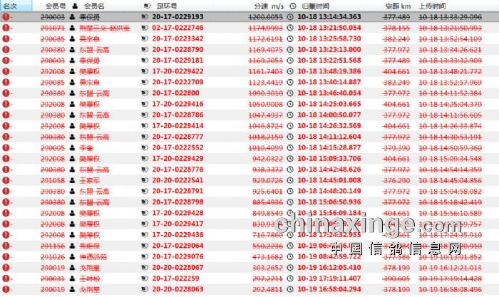 以下会员成绩因足环号错误及上传超时,成绩取消(凡超时上传者按日落计算单关资格),