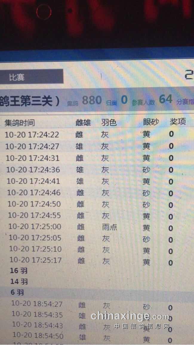 高邑鸽会特比环第三关普赛前十名验棚照片