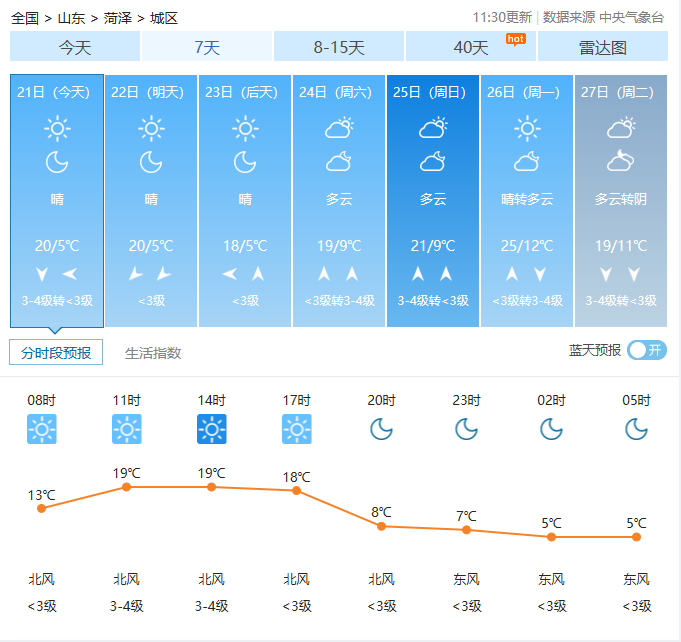 附:中国天气网发布的北京及菏泽未来一周内天气预报