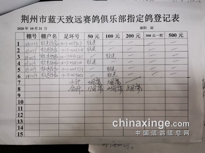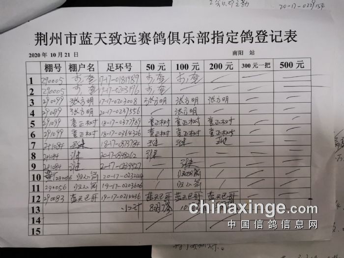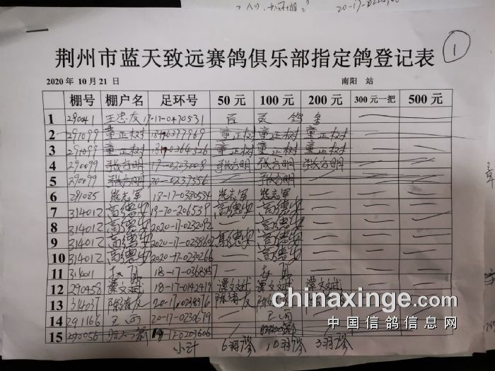 2020年秋10月21日300公里南阳站比赛指定鸽