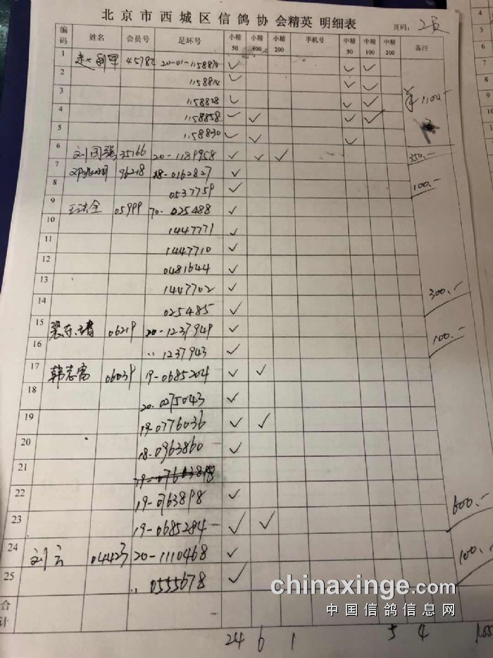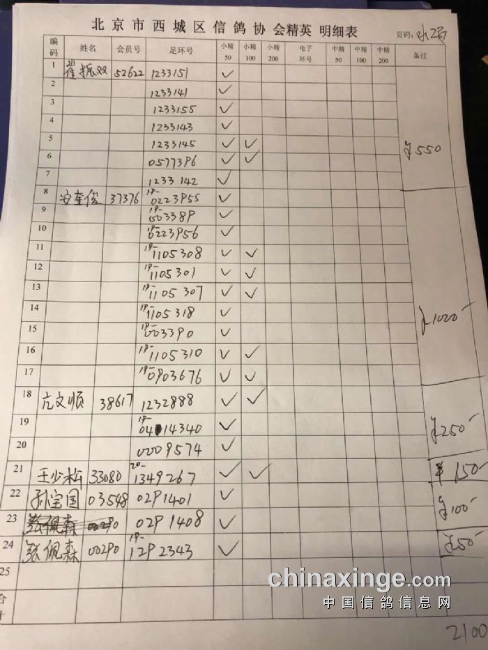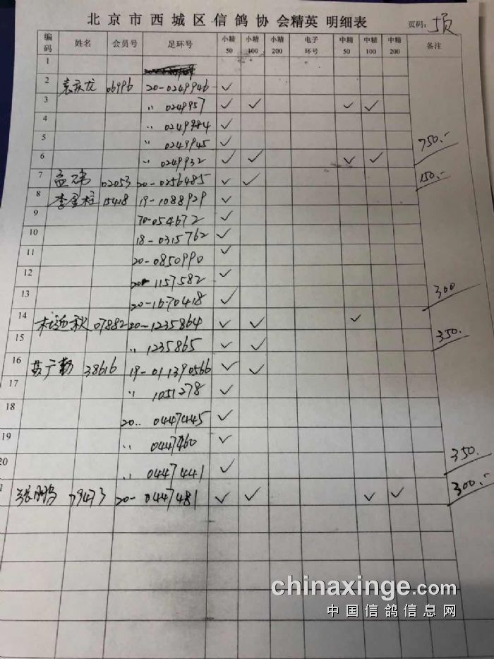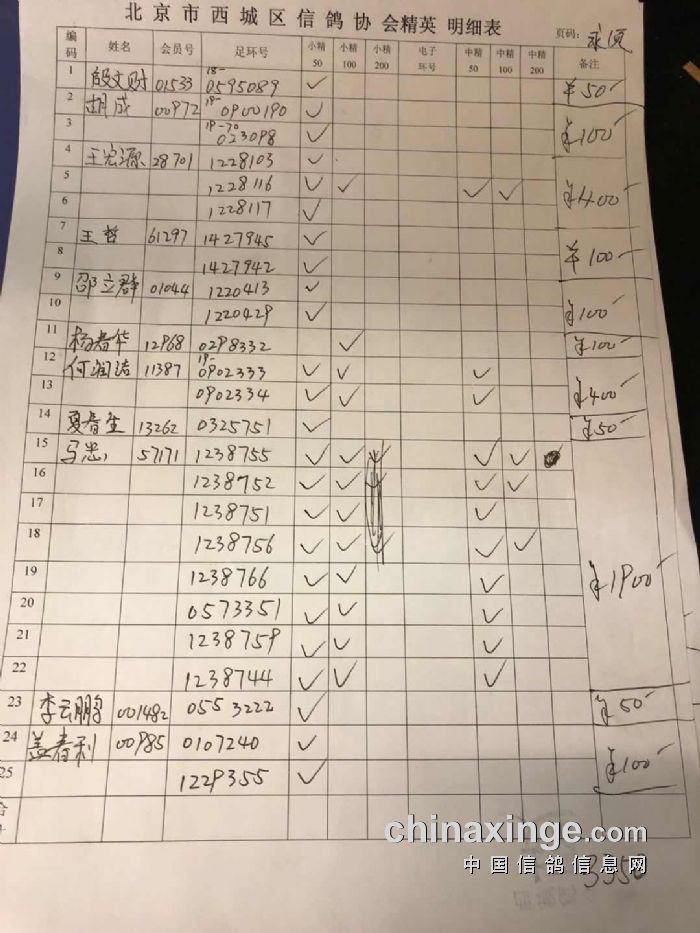 西城第八届“跨双年度最佳鸽舍、最佳鸽手”秋季积分光荣榜排名