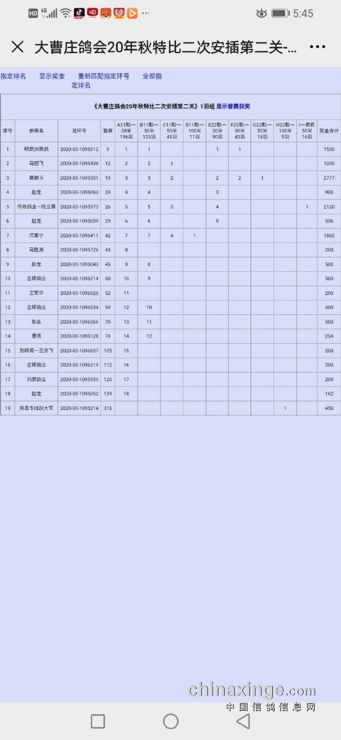 大曹庄鸽会25年秋220、280、340、380、500公里五关鸽王临时成绩