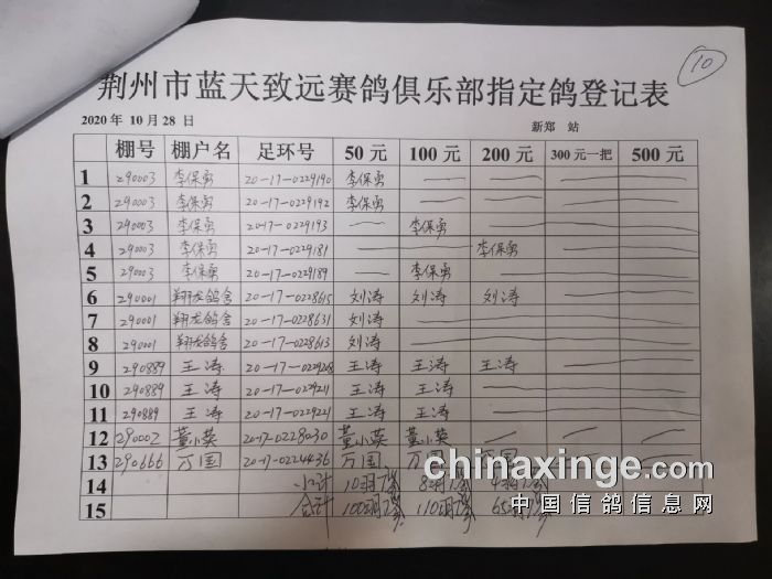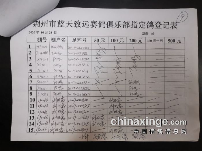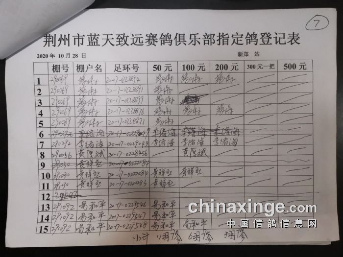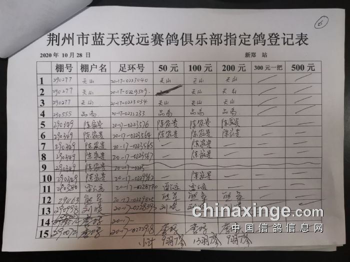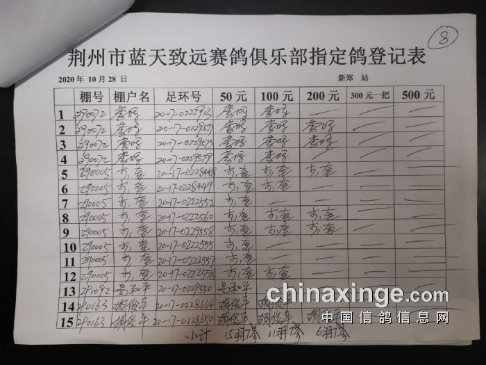 2017年11月26日480公里新郑站年度王中王比赛集鸽清单