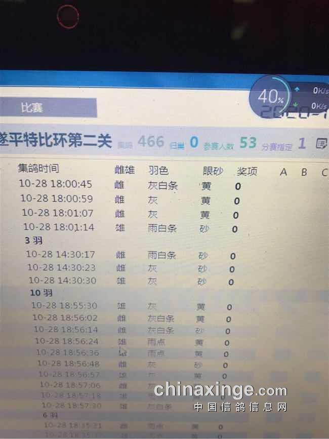 高邑鸽会特比环第四关前十名验棚照片