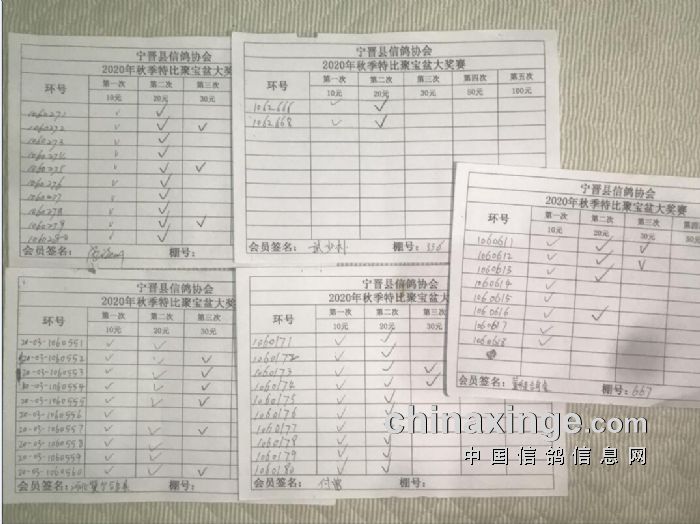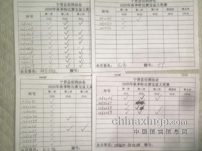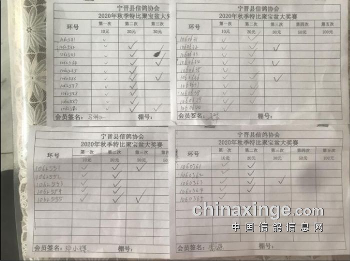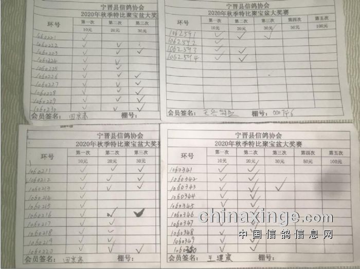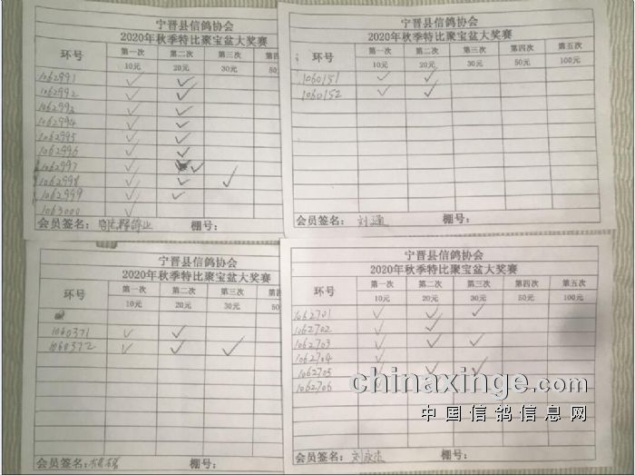宁晋县信鸽协会2020年秋聚宝盆第三次缴费清单