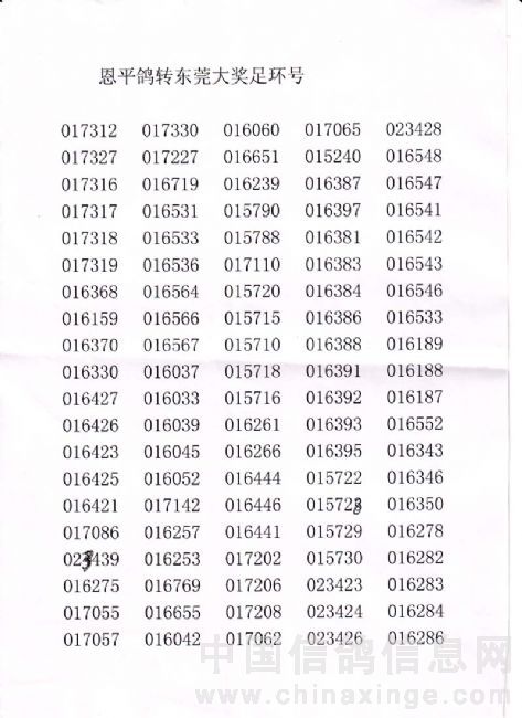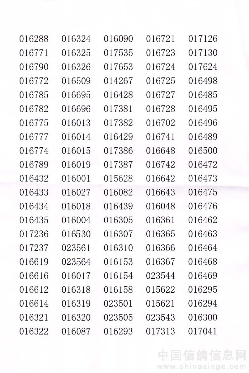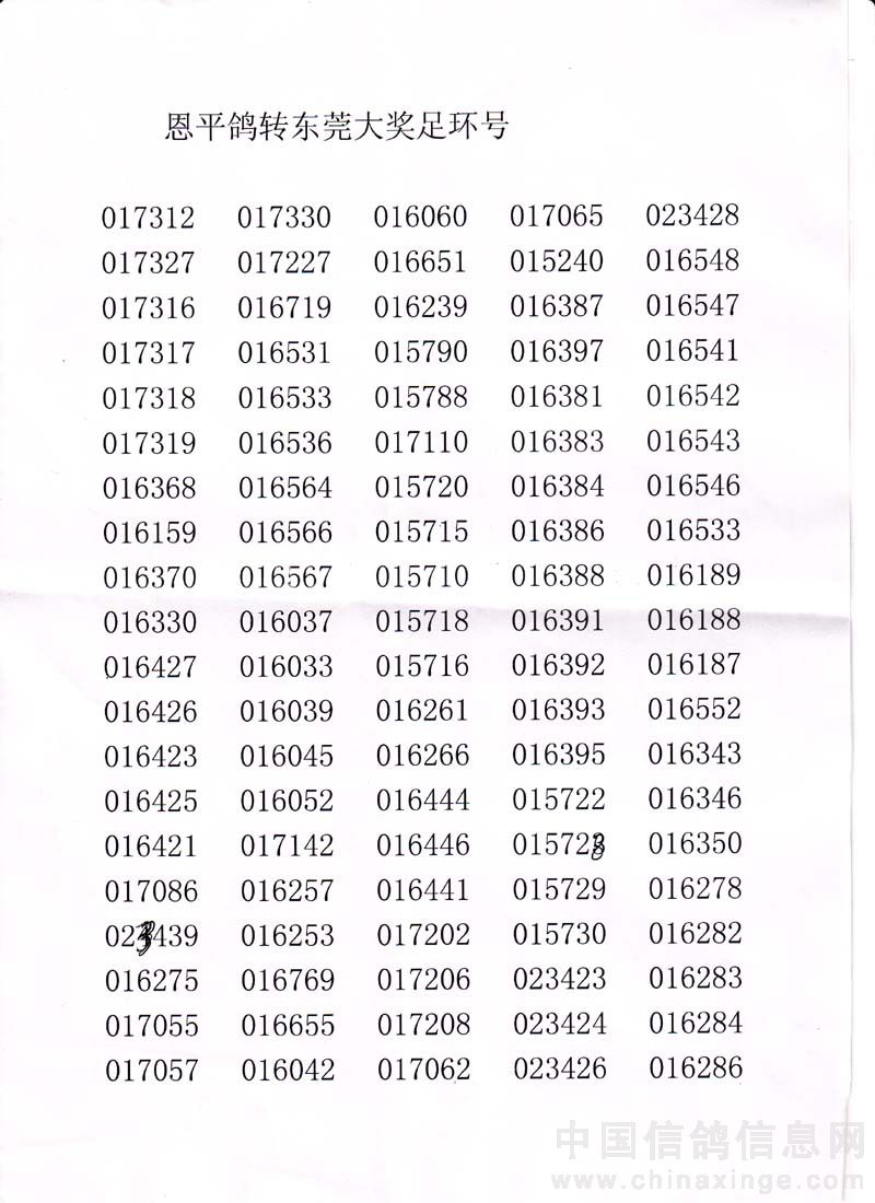 广西北海市信鸽协会2009年秋季恩平鸽转东莞大奖足环的名单