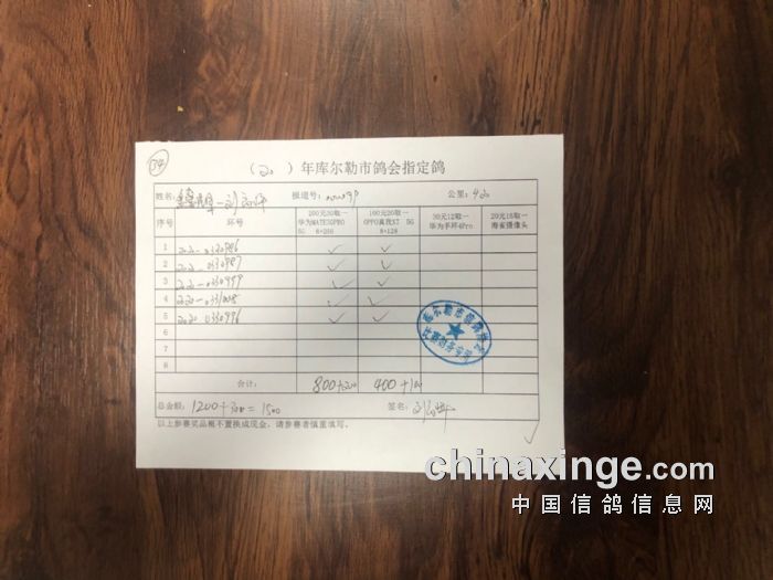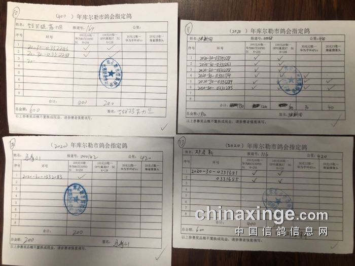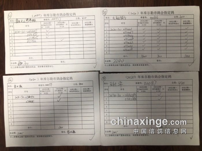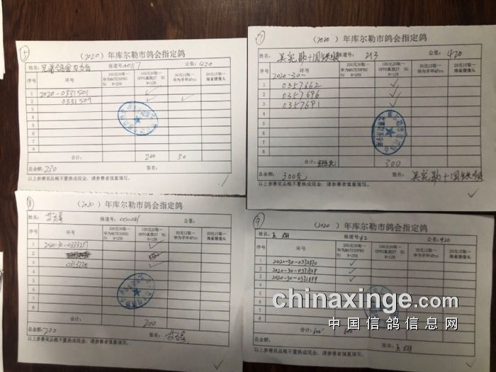 2020年秋季五关鸽王420公里指定鸽明细(手机)