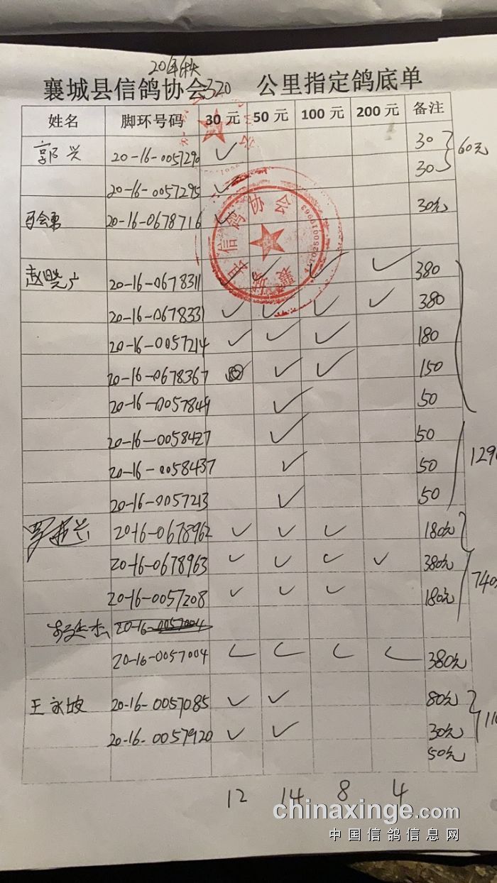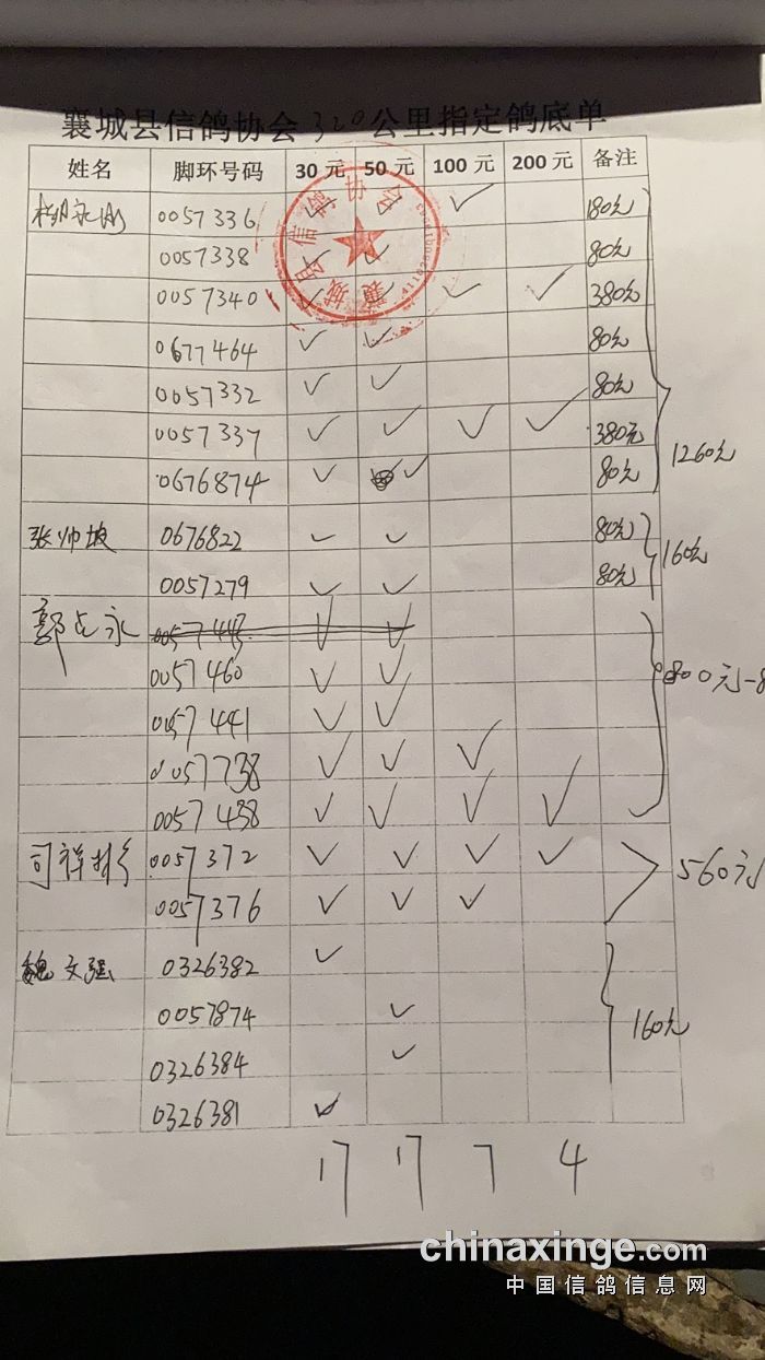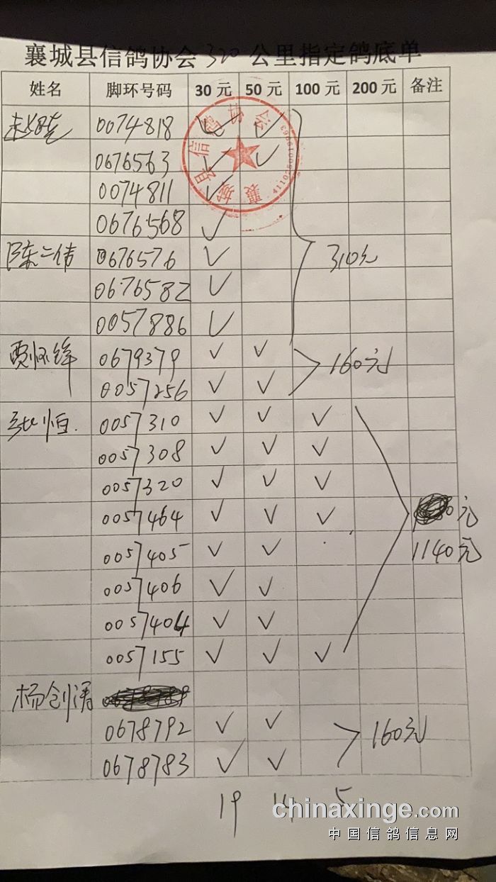 襄城信鸽协会25年秋季第三关510公里湖南南县比赛集鸽清单