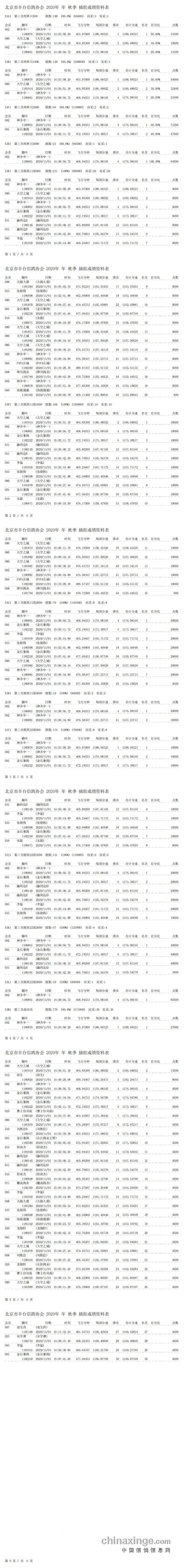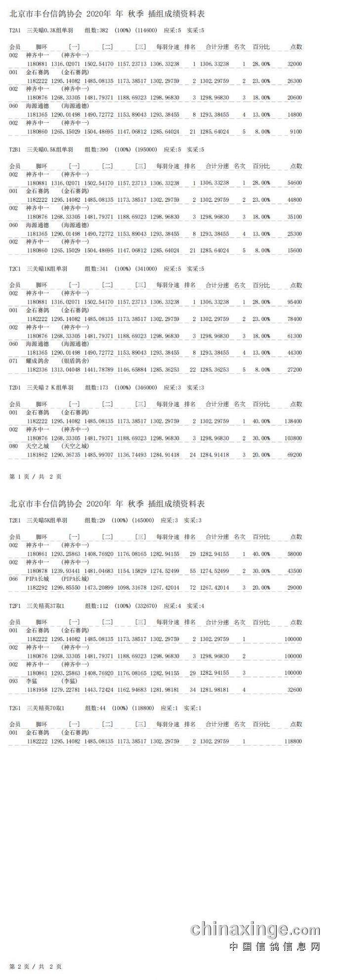丰台鸽会2000元特比环第三关明、暗指定鸽成绩