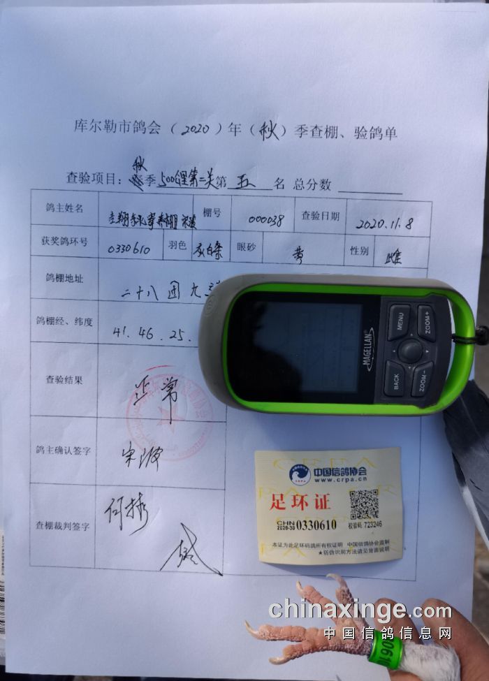 2020年秋五关鸽王第二关500公里1-5名验棚照片