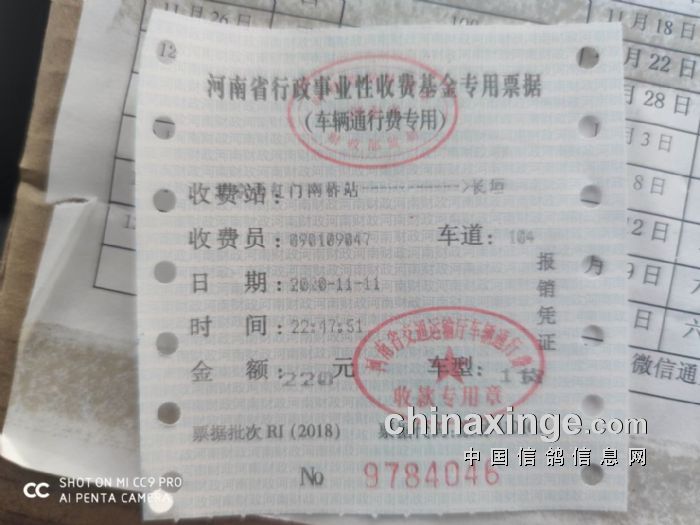 西城鸽会11月11日双关拍卖赛550公里在河南长垣收费站7.20分开笼