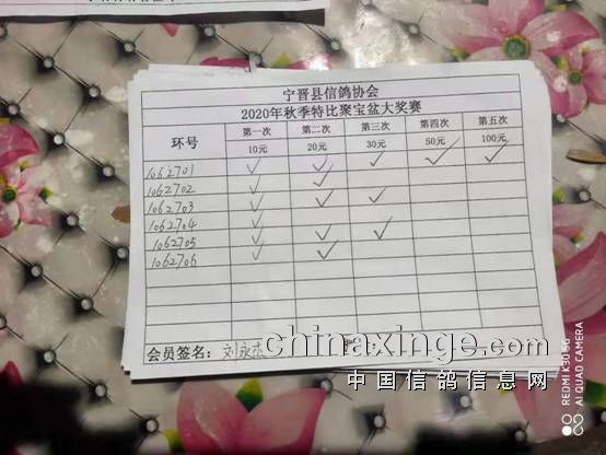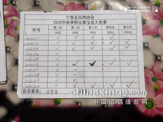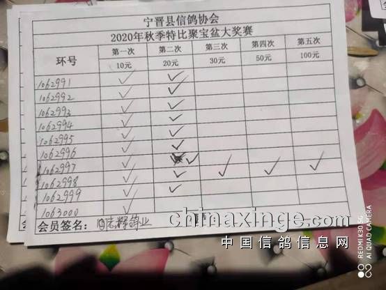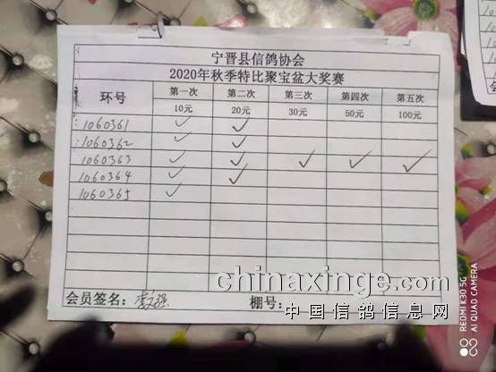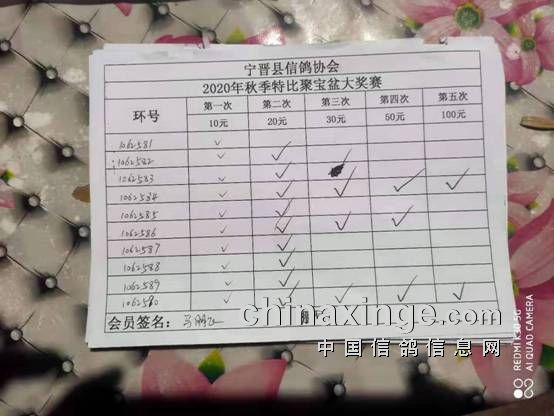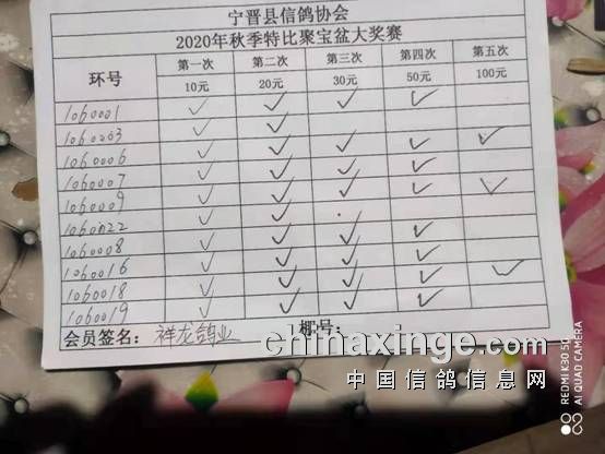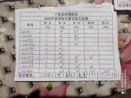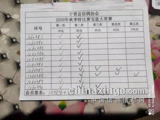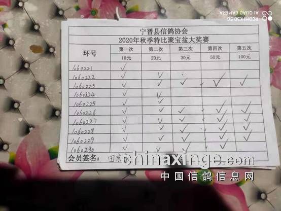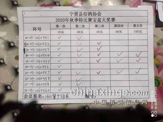 宁晋信鸽协会2020年秋季特比聚宝盆第五次指定清单