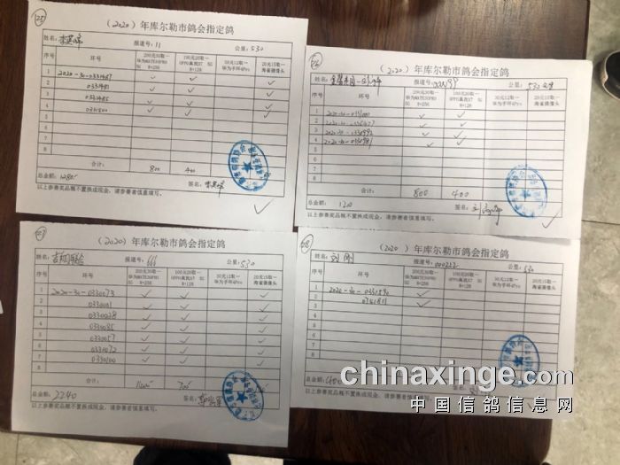 2020年秋五关鸽王第三关530公里指定鸽明细(手机)