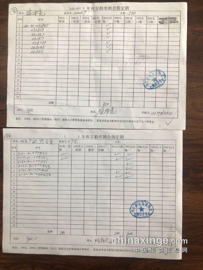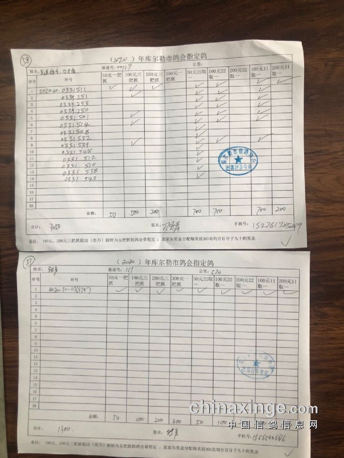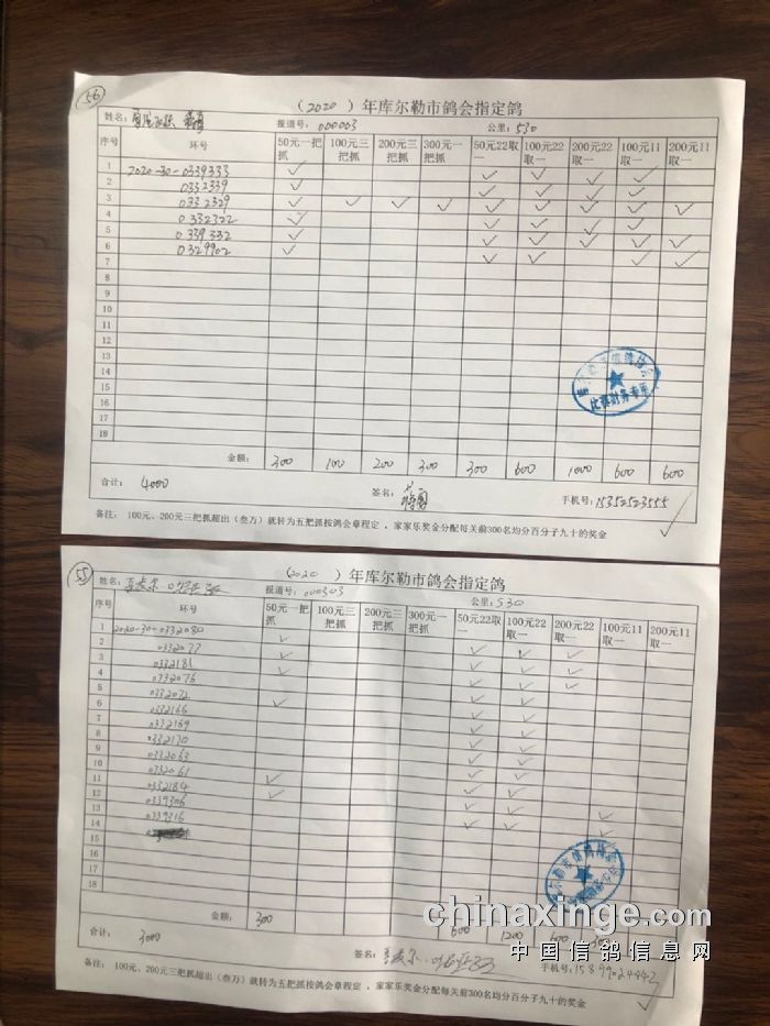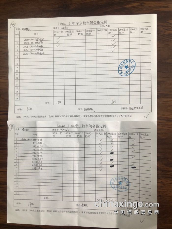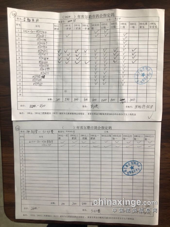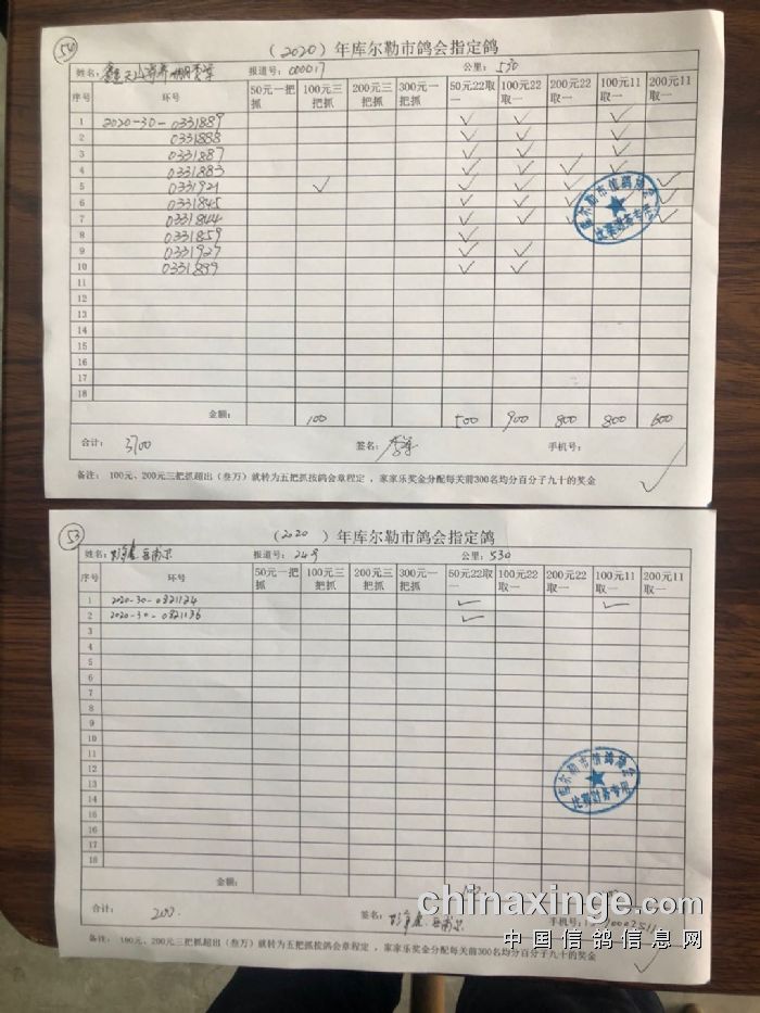 2020年秋五关鸽王第三关530公里指定鸽明细2