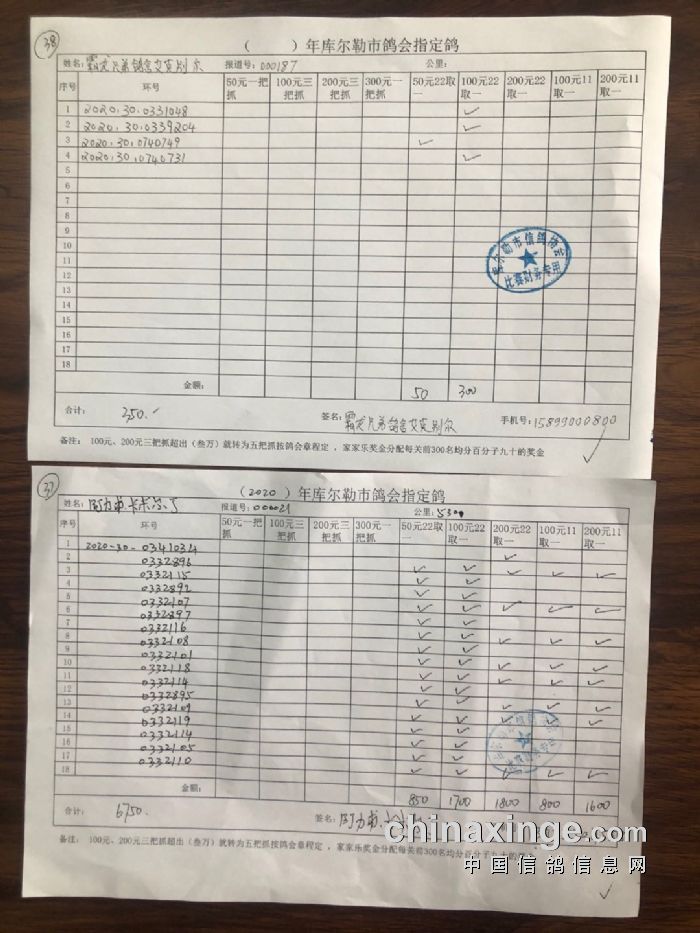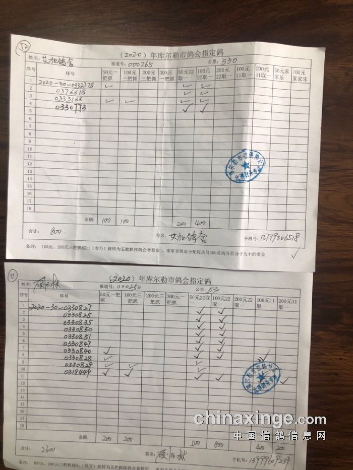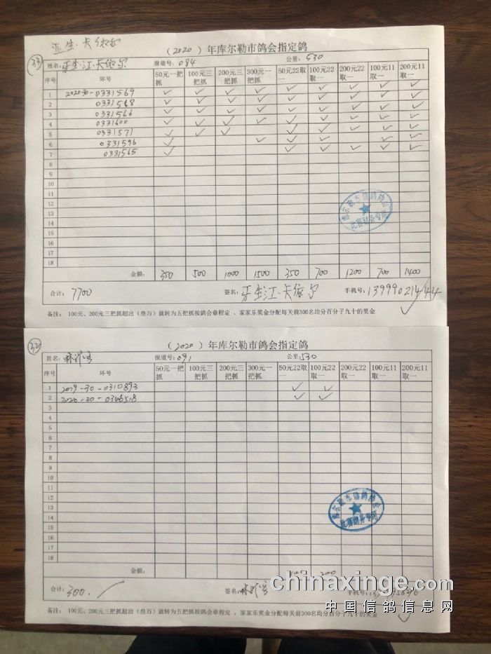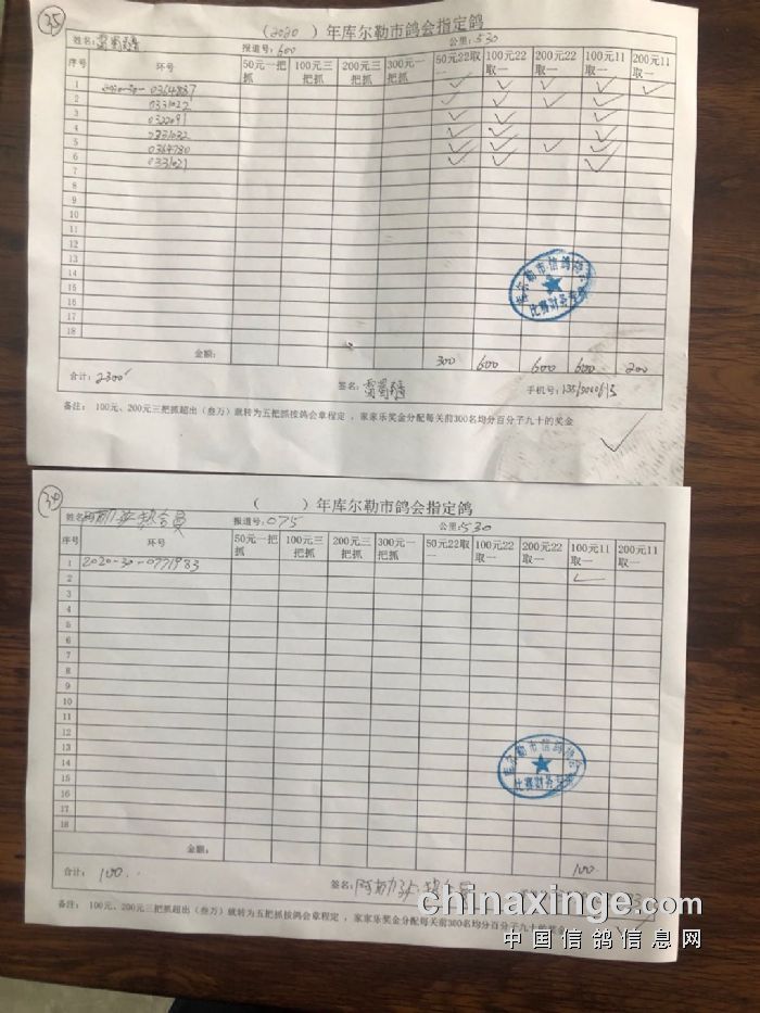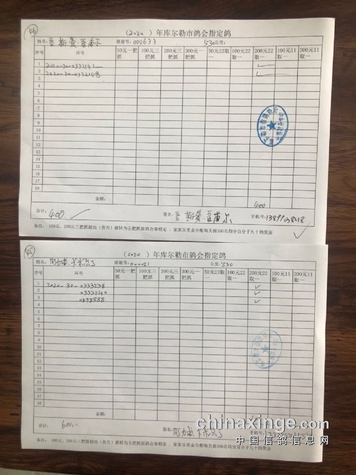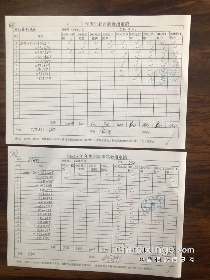 2020年秋五关鸽王第三关530公里指定鸽明细2