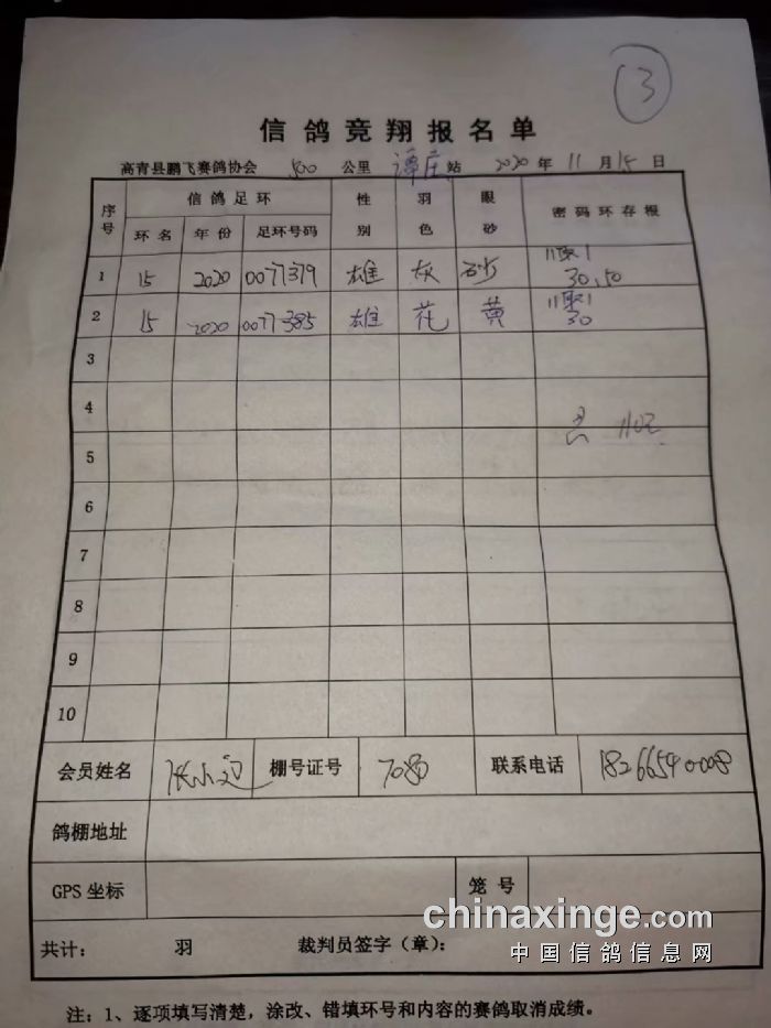 500公里验鸽通知