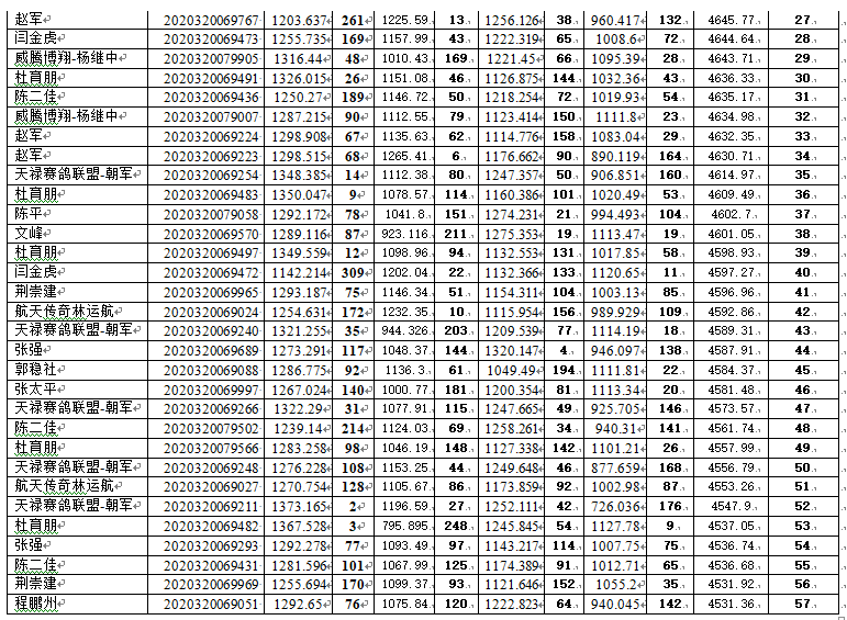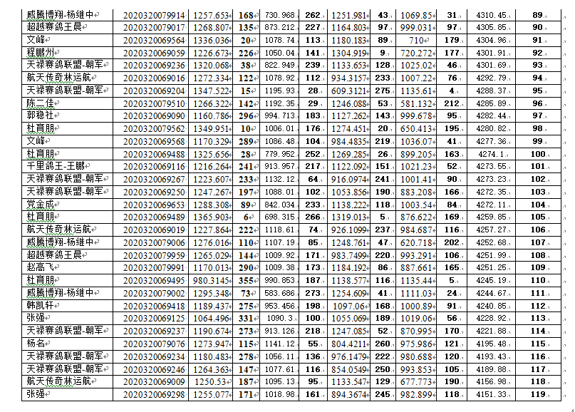 咸阳铁路信鸽协会2024年秋季第二关比赛成绩