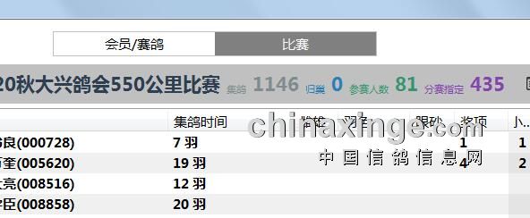 20秋大兴鸽会550公里集鸽羽数