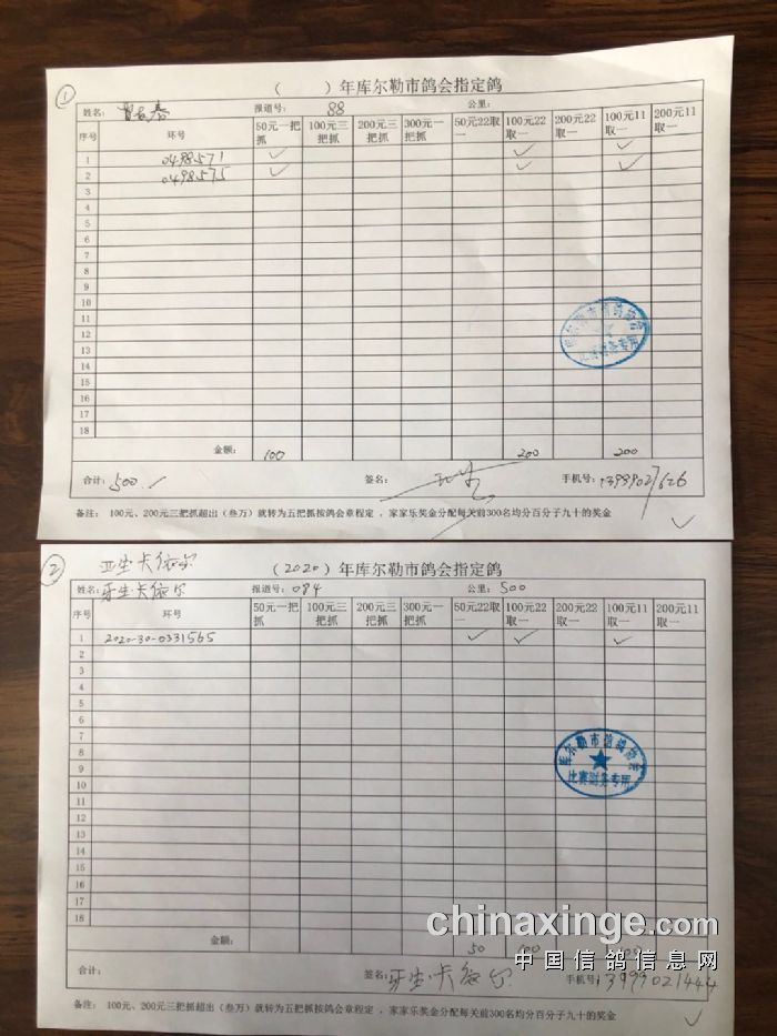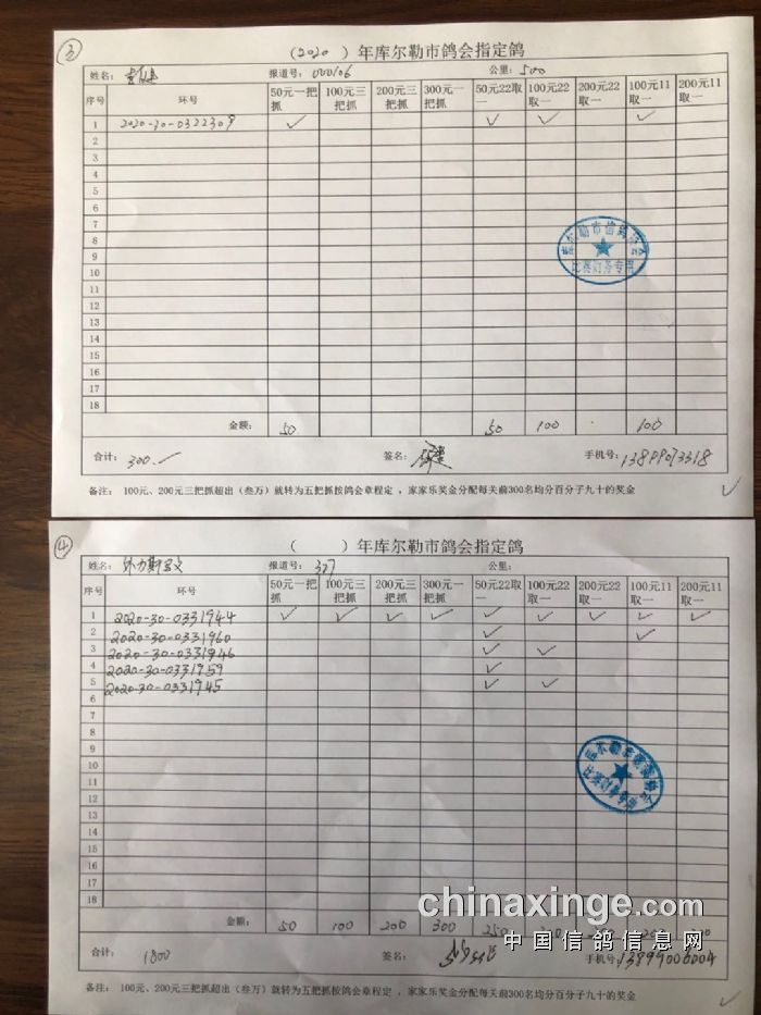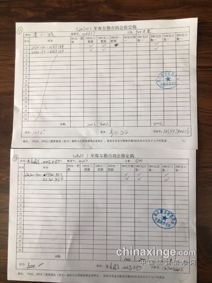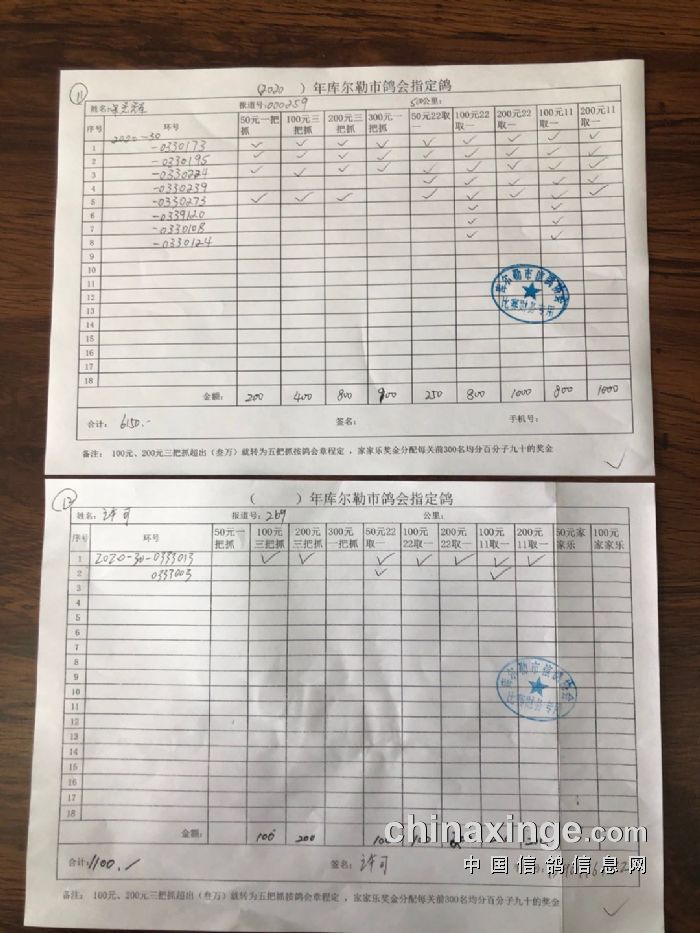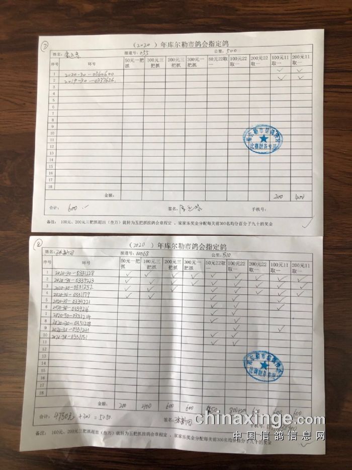 2020年秋五关鸽王第五关500公里指定鸽明细1