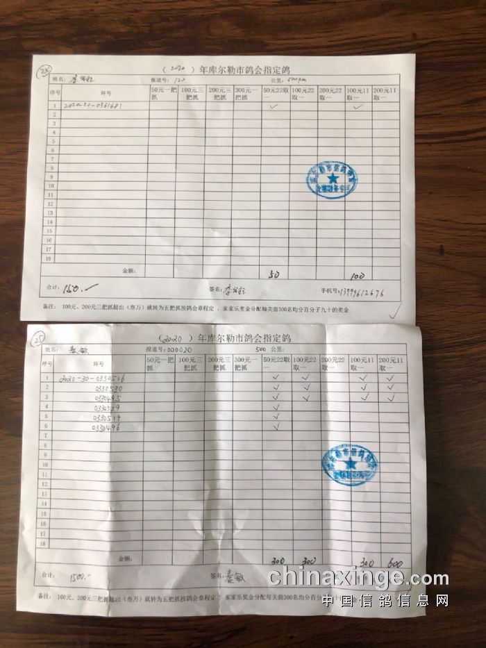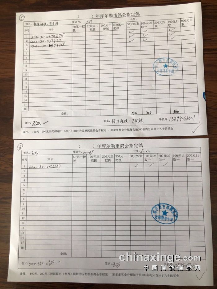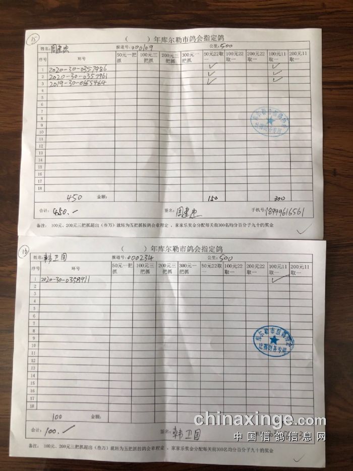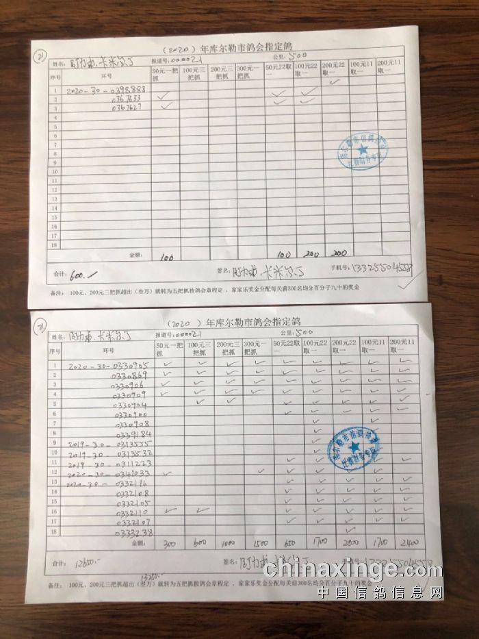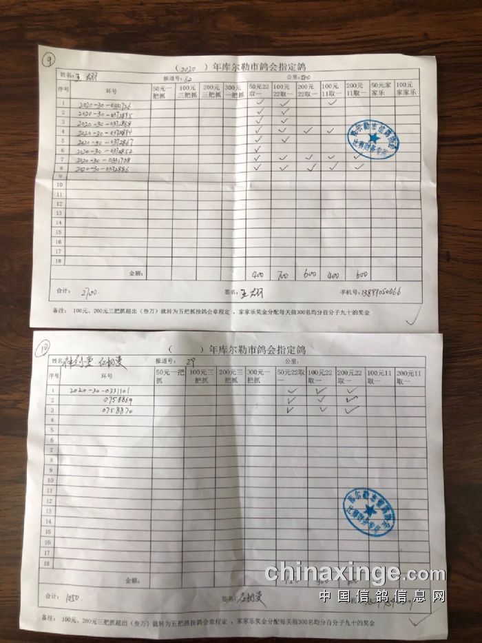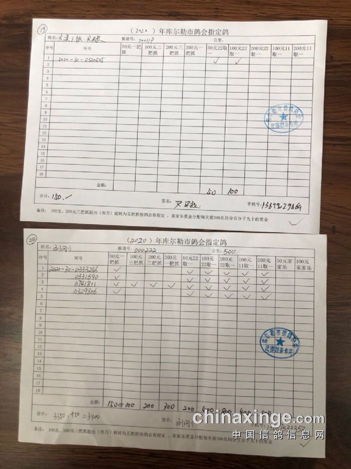 2020年秋五关鸽王第五关500公里指定鸽明细1