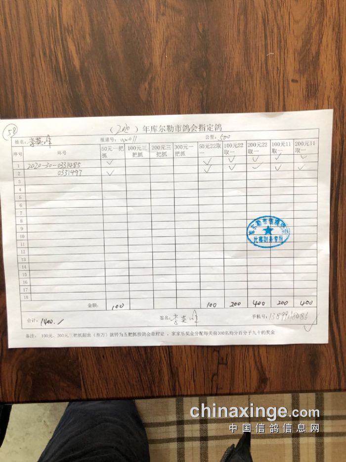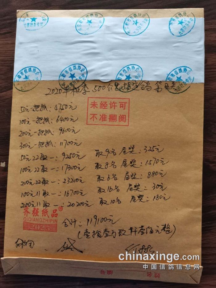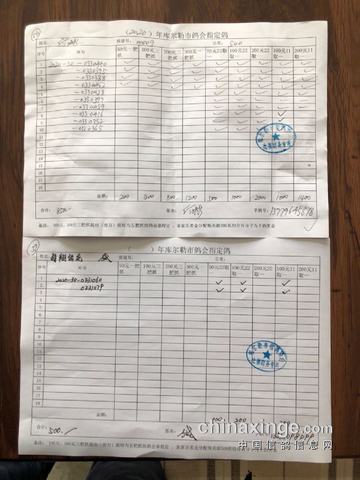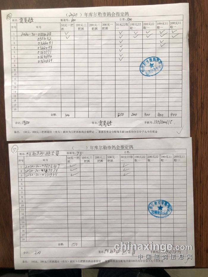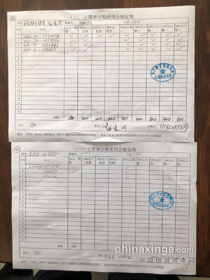 2020年秋五关鸽王第五关500公里指定鸽明细3