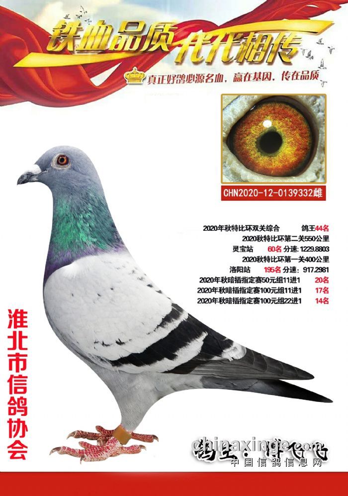 淮北市信鸽协会2021秋特比环优胜鸽151-154名