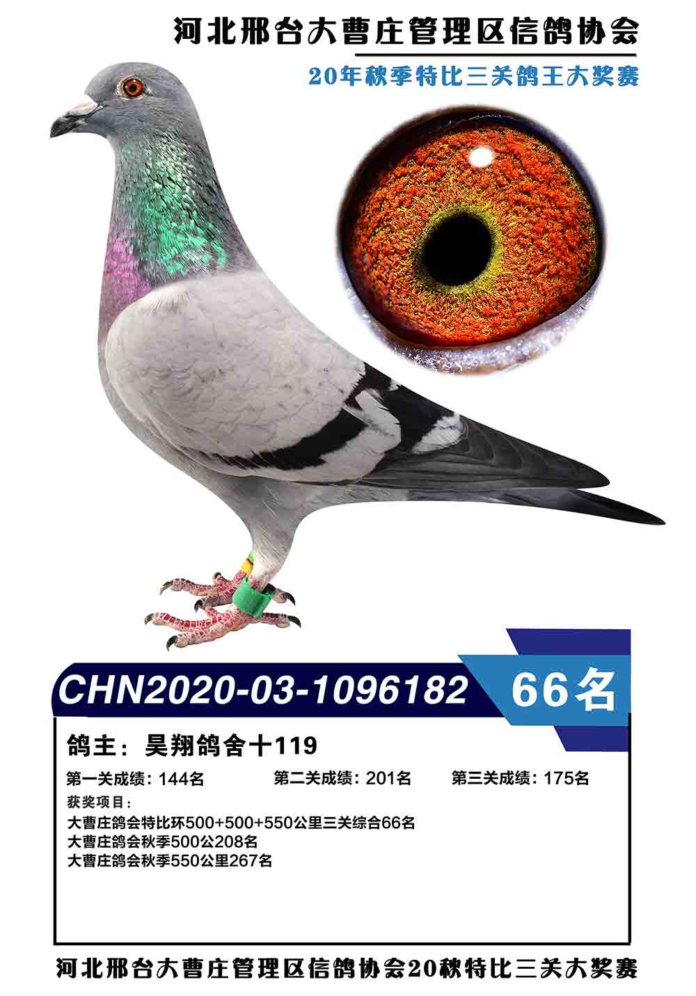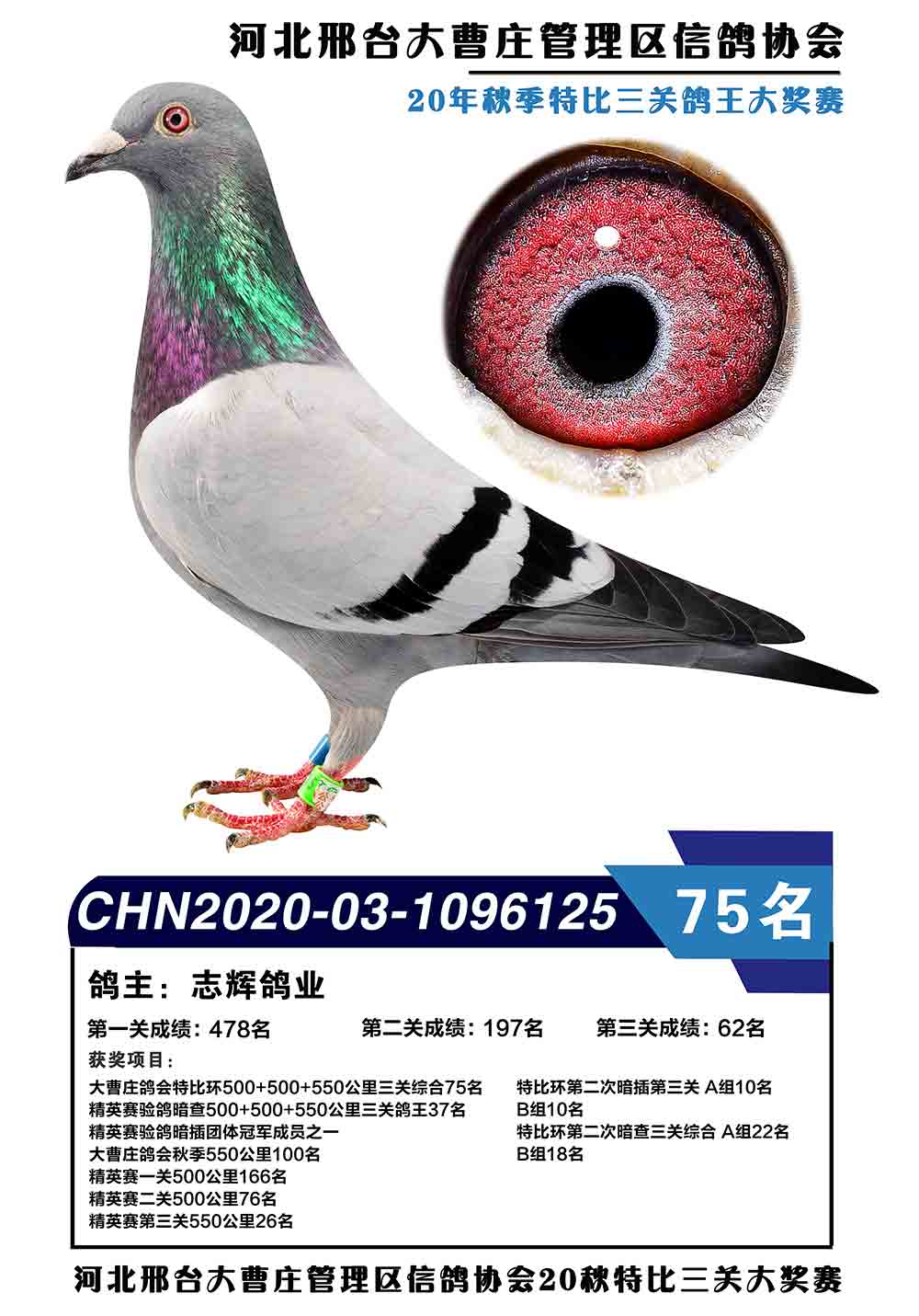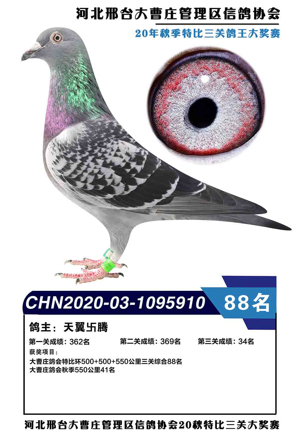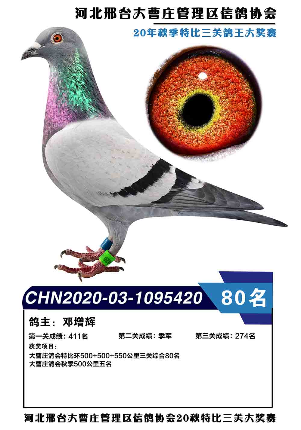 今日结拍大曹庄信鸽协会2020年秋季特比环获奖鸽61-90名欣赏