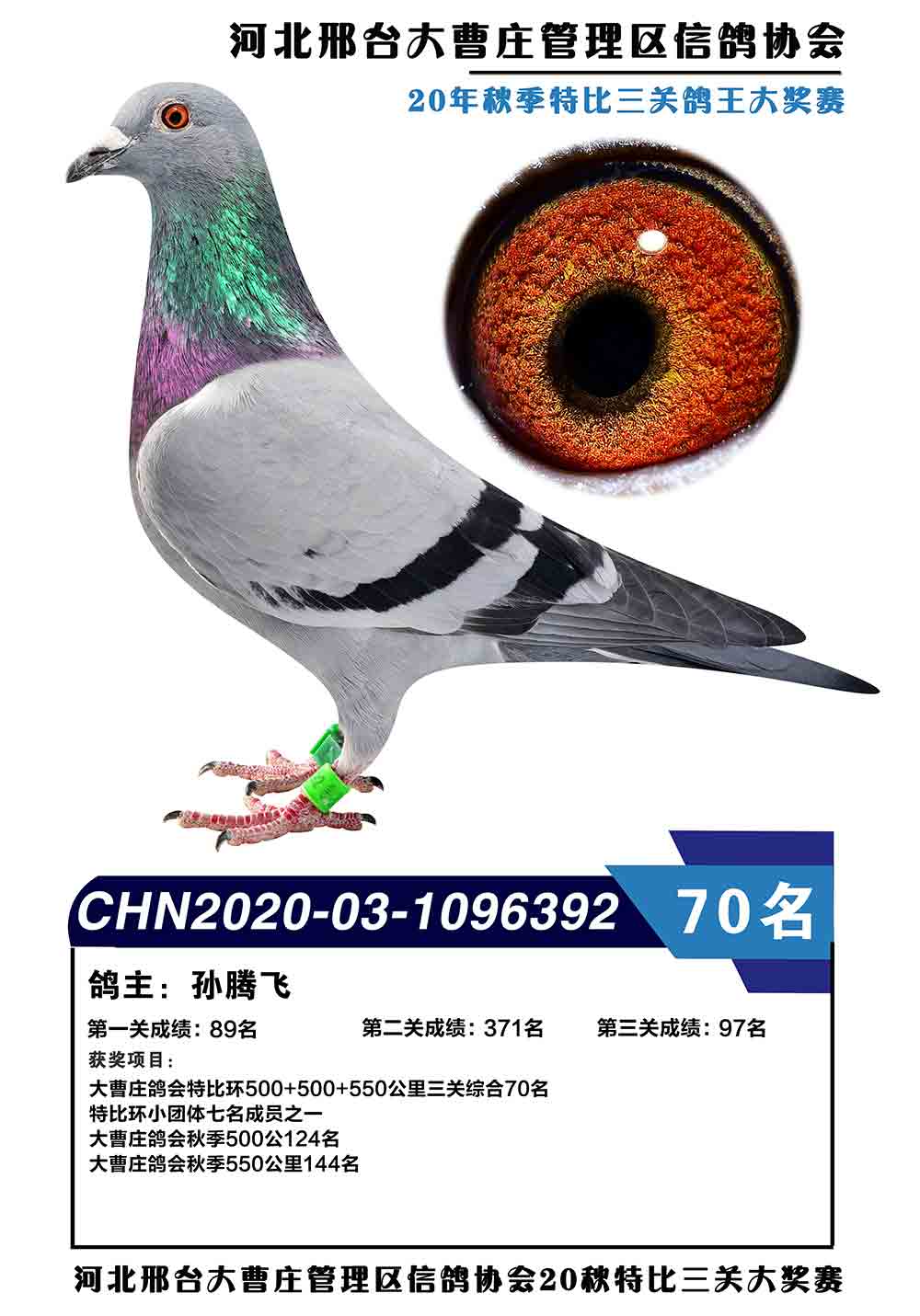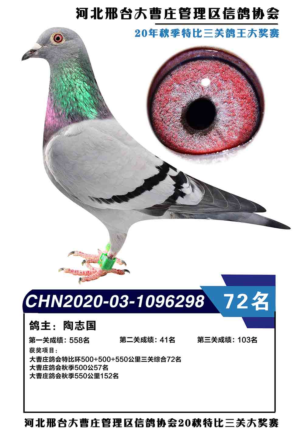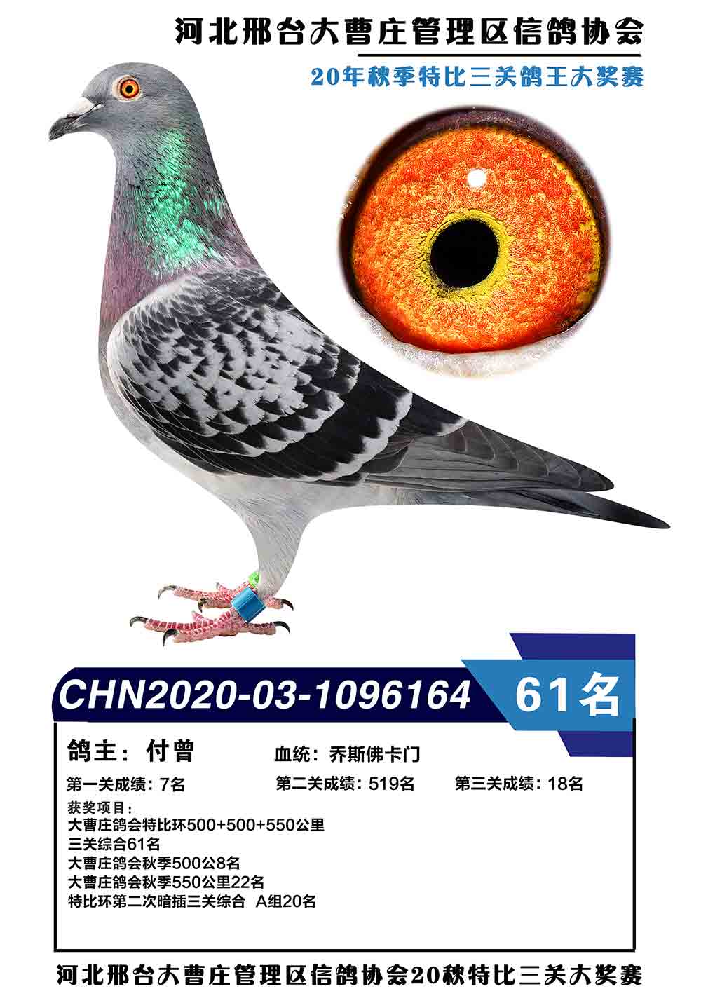 今日结拍大曹庄信鸽协会2020年秋季特比环获奖鸽61-90名欣赏