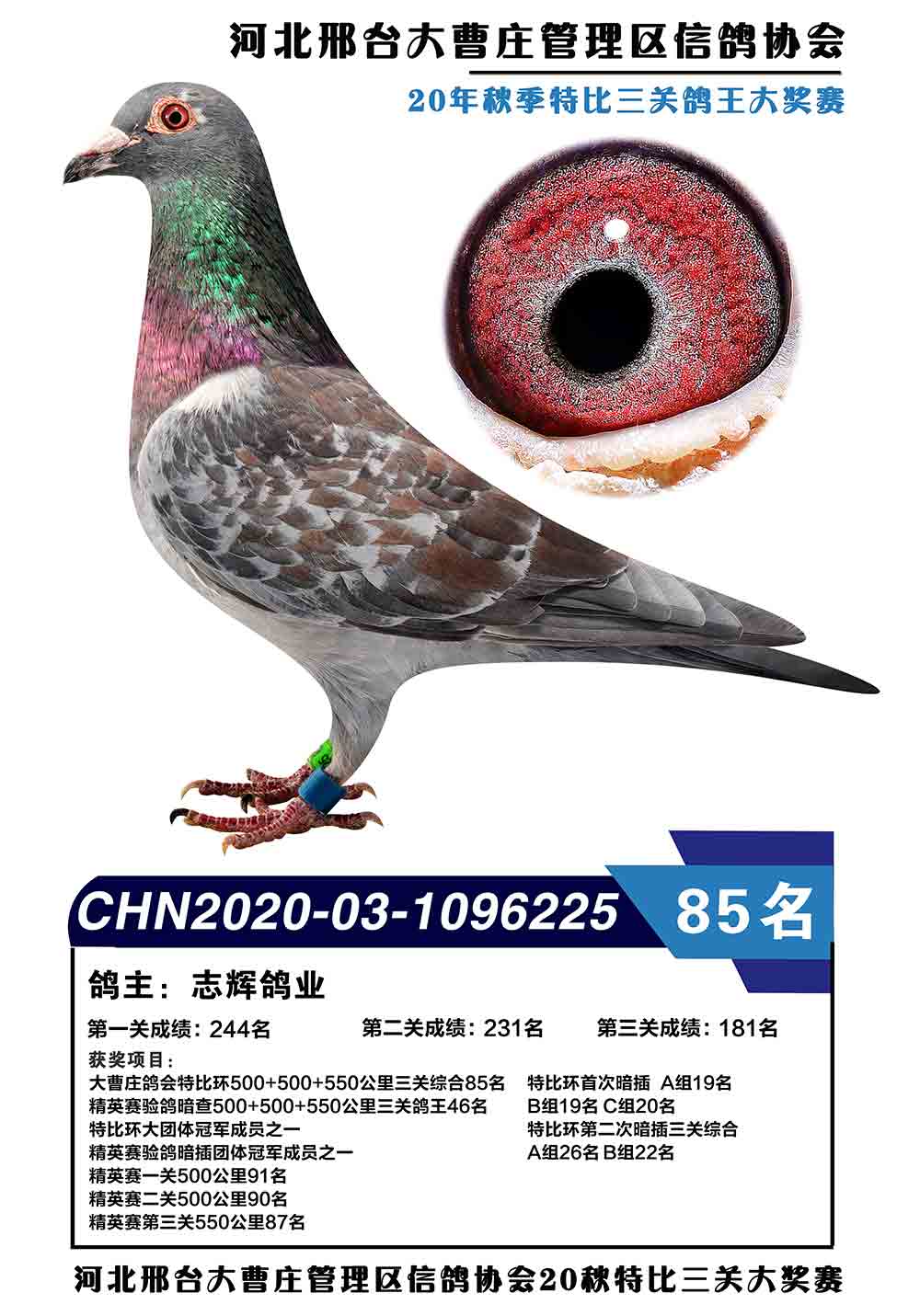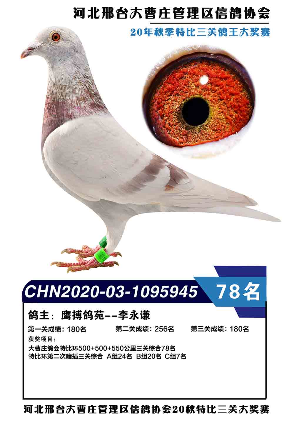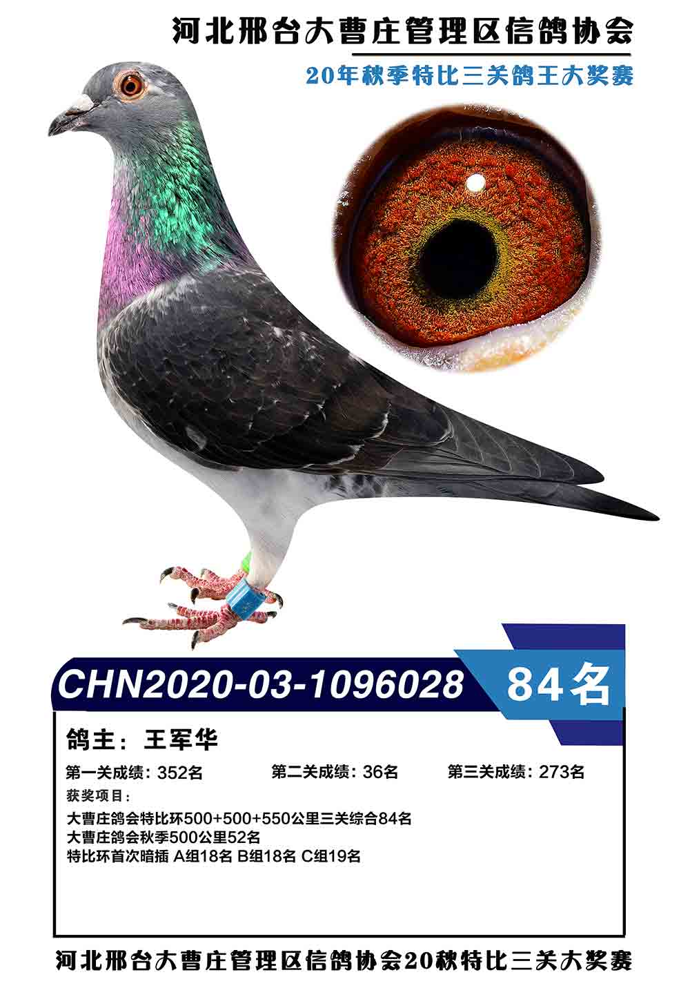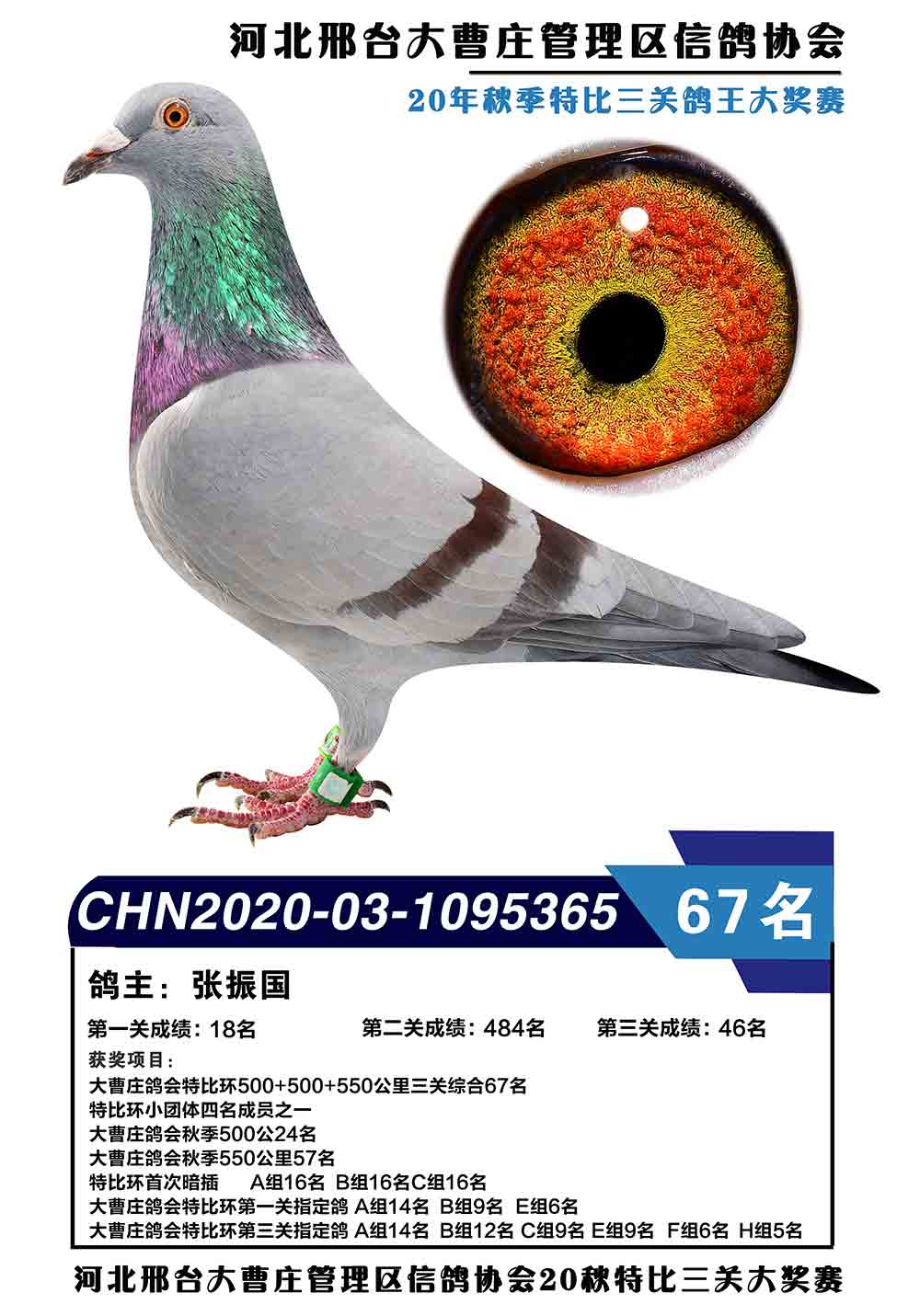 今日结拍大曹庄信鸽协会2020年秋季特比环获奖鸽61-90名欣赏