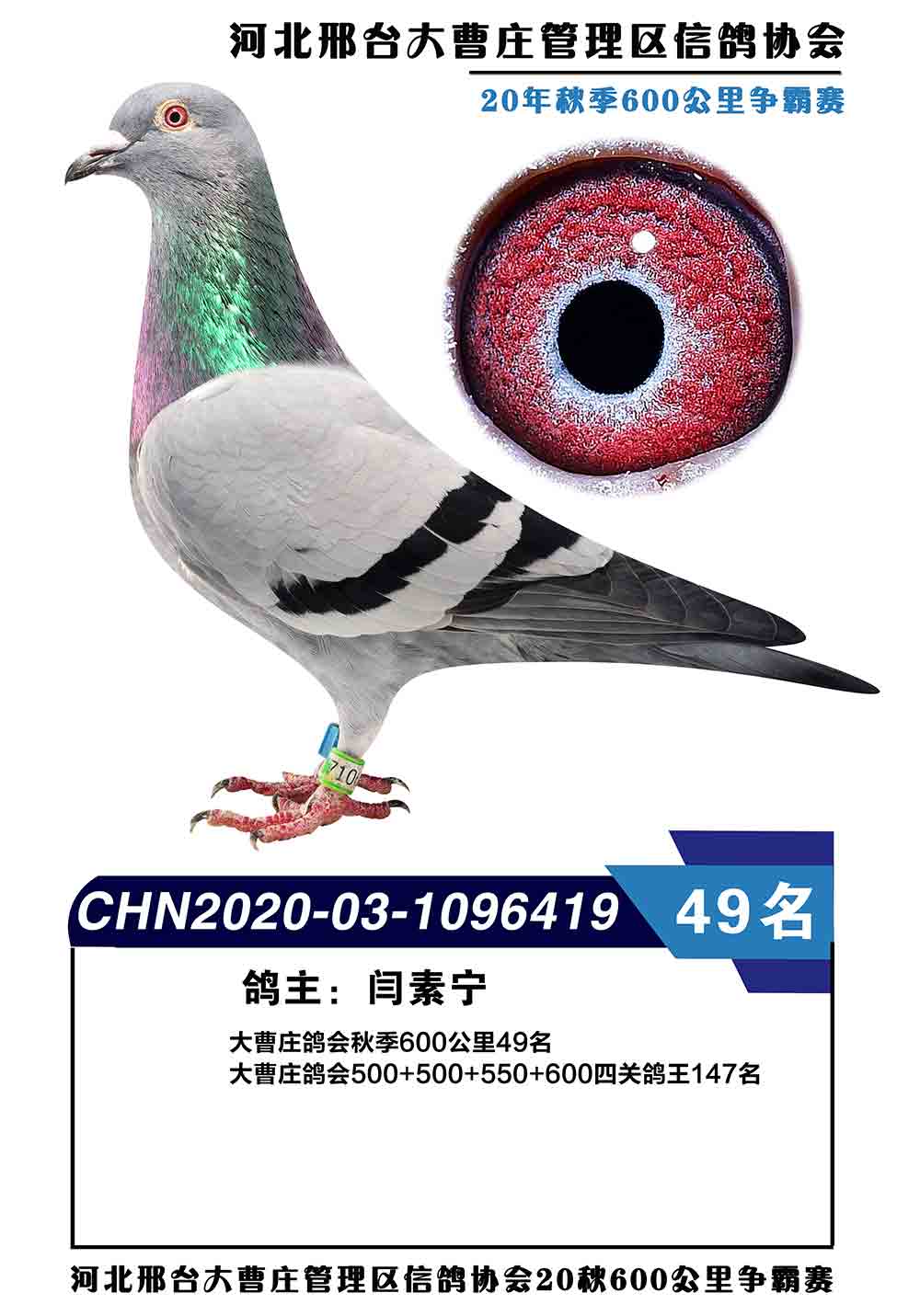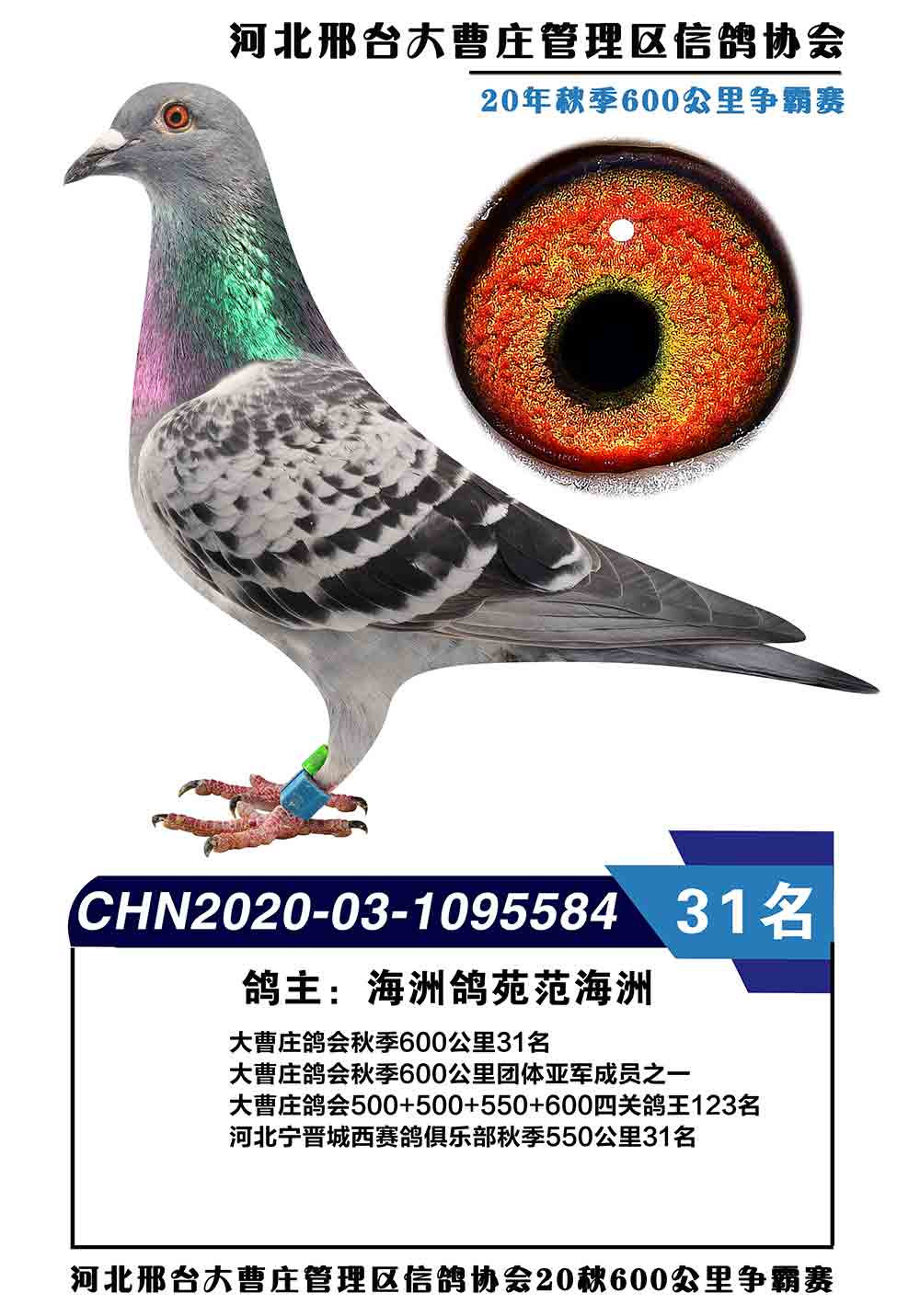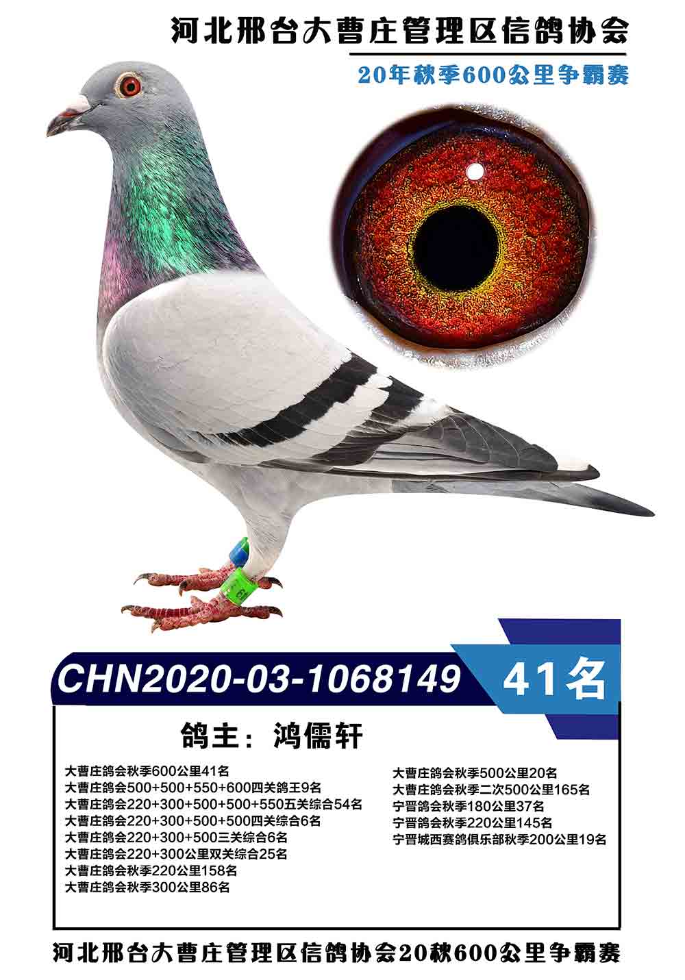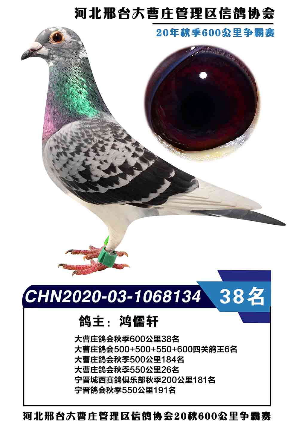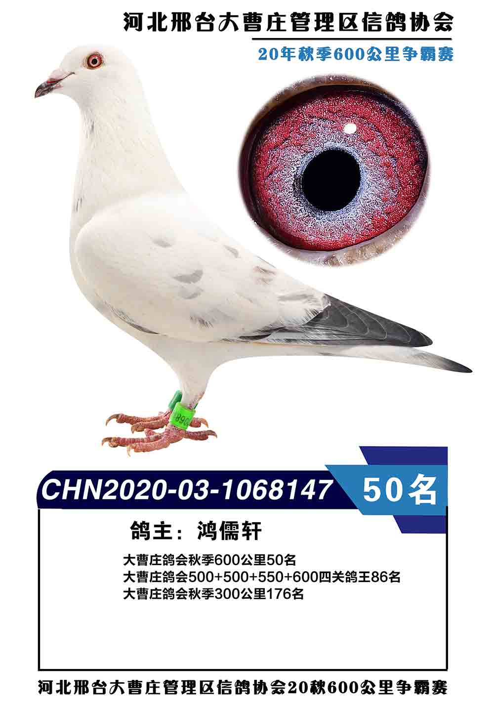 大曹庄信鸽协会2020年秋季600公里获奖鸽31-50名欣赏