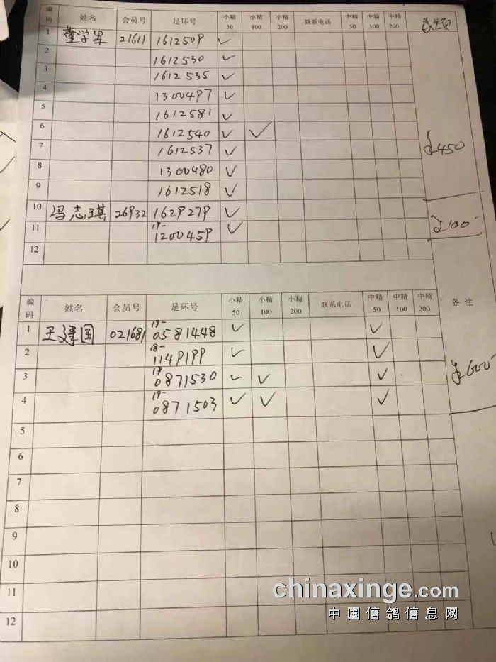 西城鸽会第五届“元旦杯”双关拍卖赛第二关精英详情