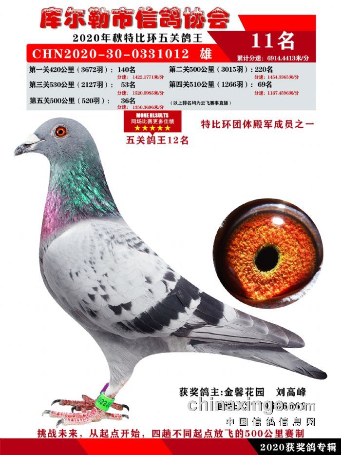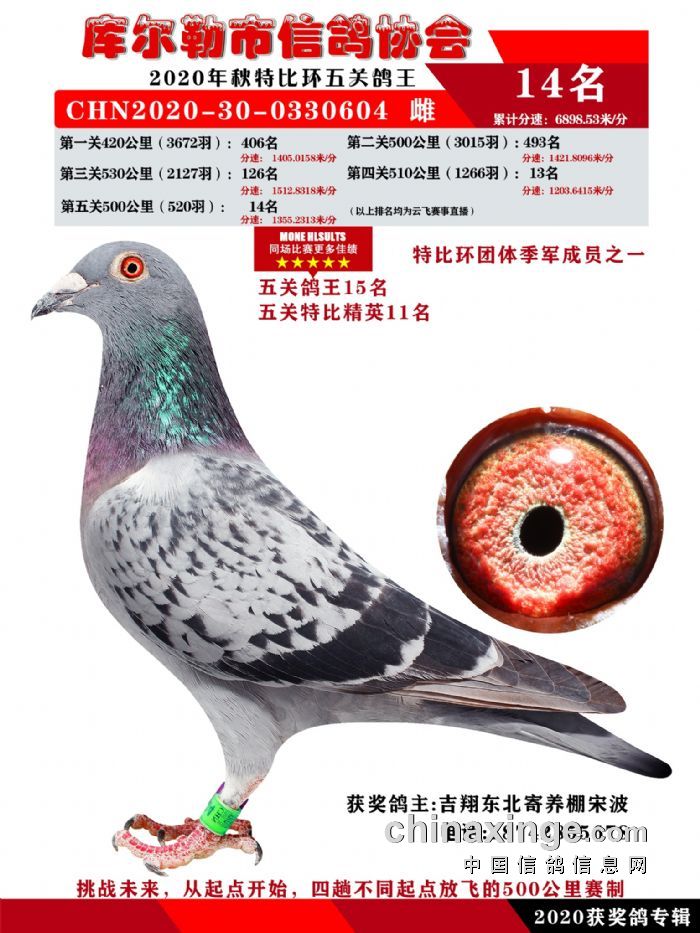 2020年秋五关鸽五、特比、精英获奖鸽照片1-15名