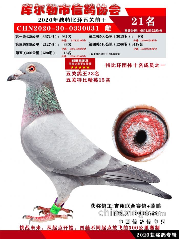 2020年秋五关鸽五、特比、精英获奖鸽照片16-30名