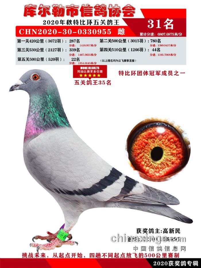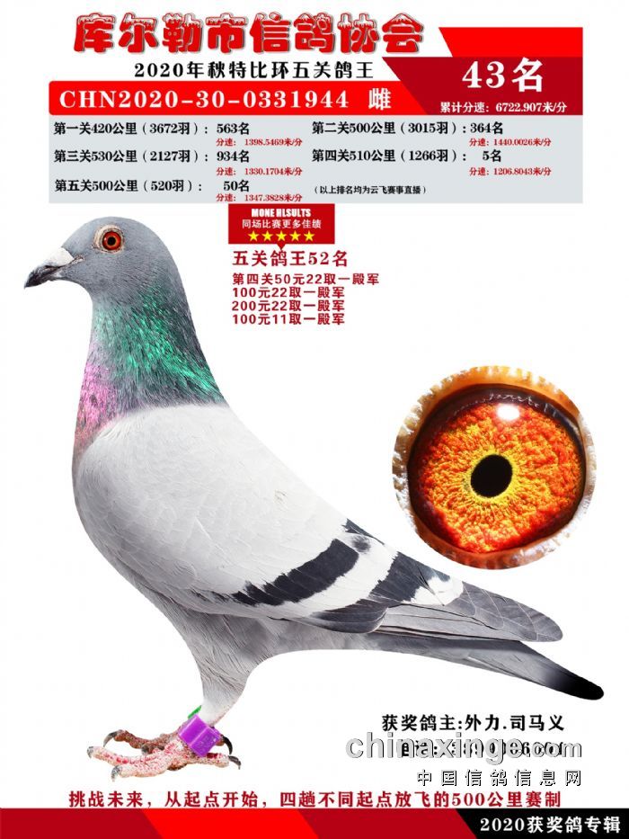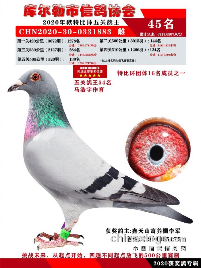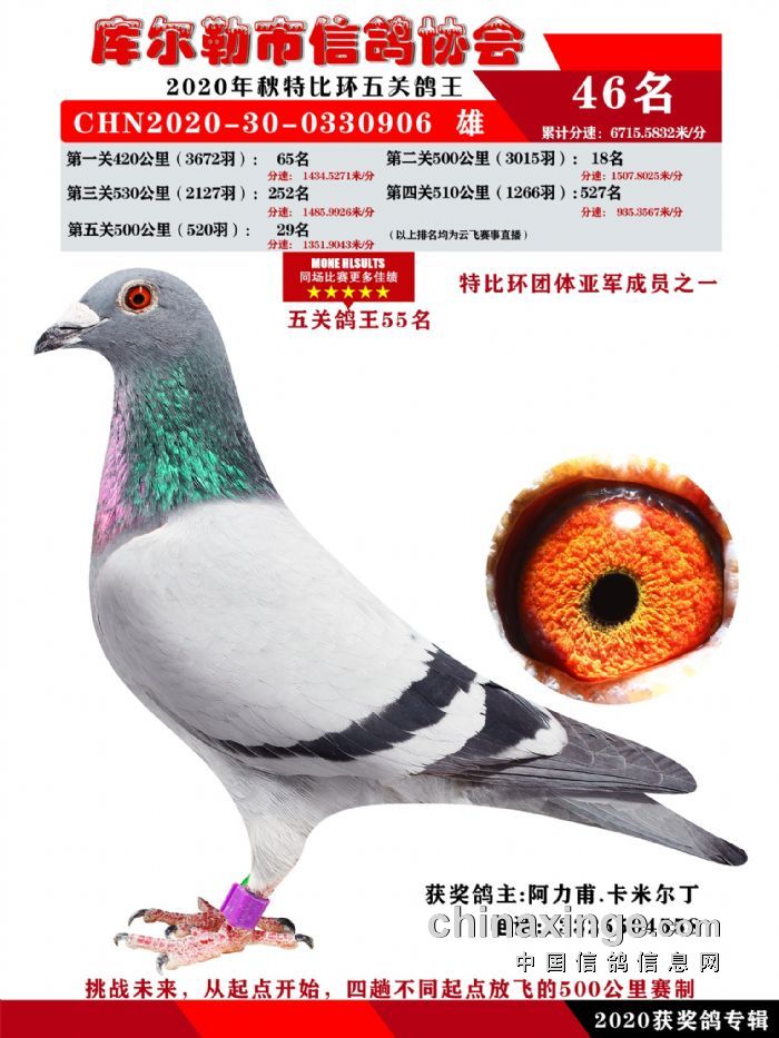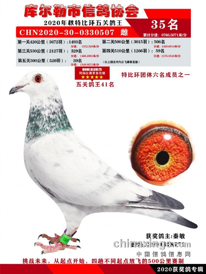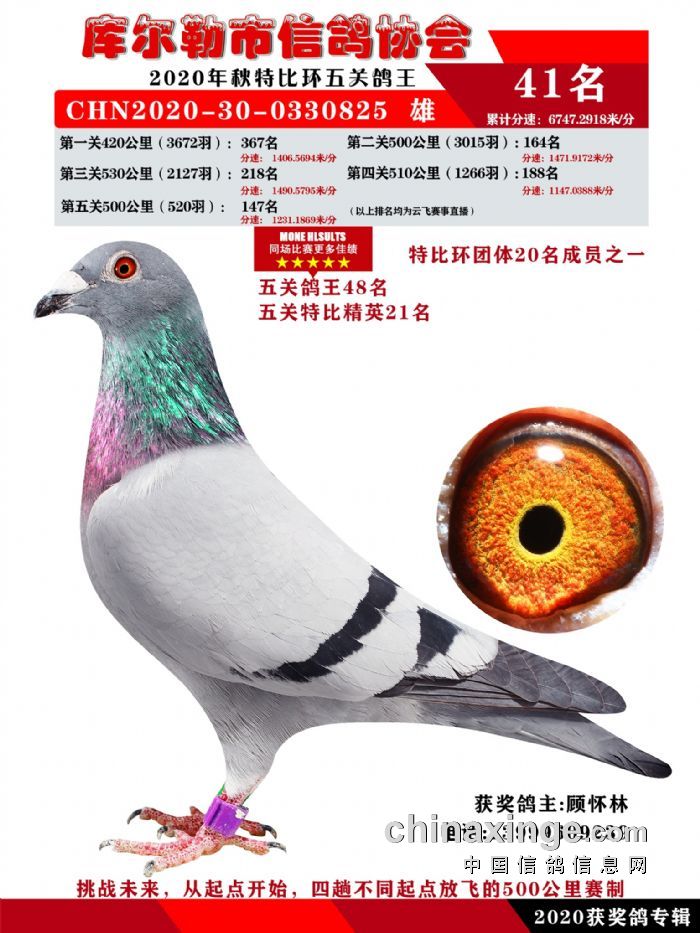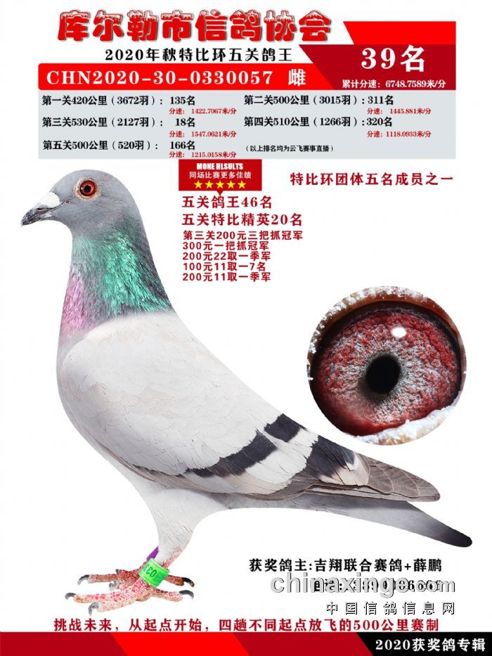 2020年秋五关鸽五、特比、精英获奖鸽照片31-46 名