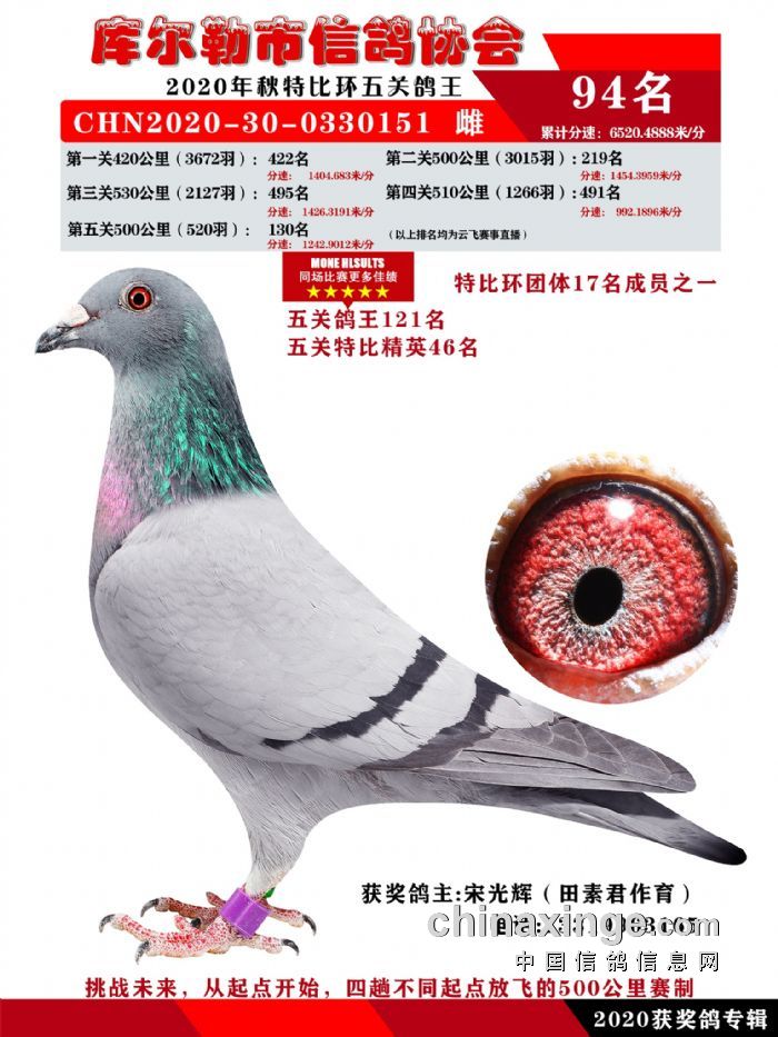 2020年秋五关鸽五、特比、精英获奖鸽照片93-107名