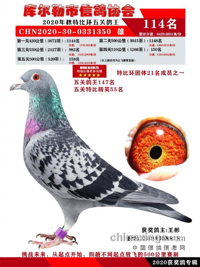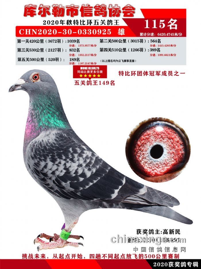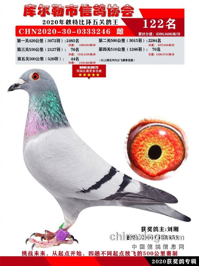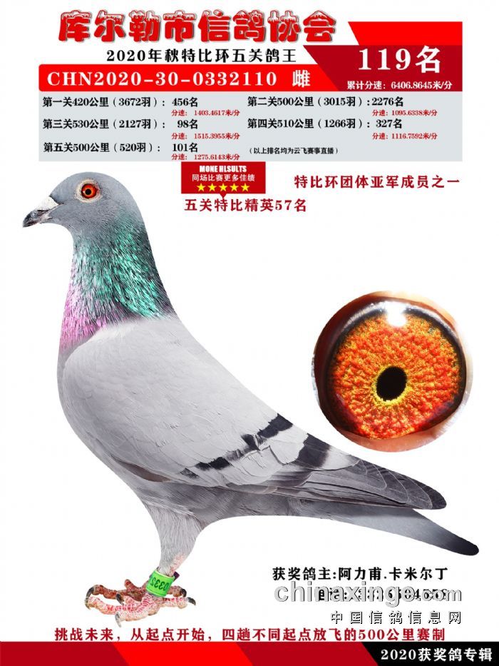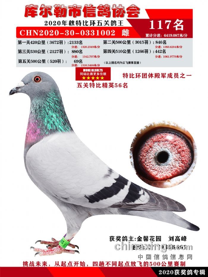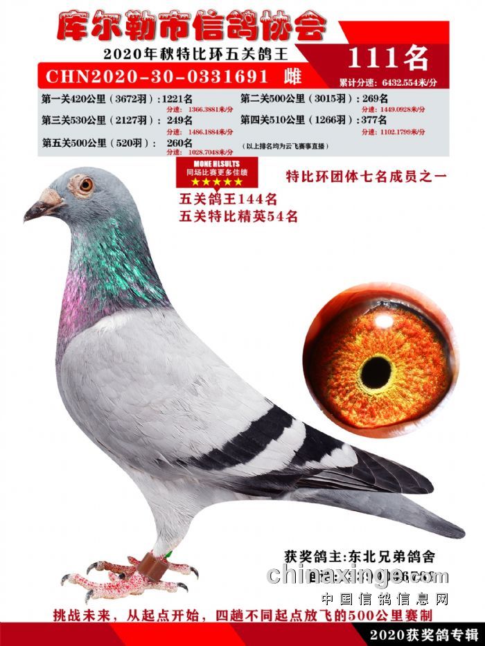 2020年秋五关鸽五、特比、精英获奖鸽照片108-122名